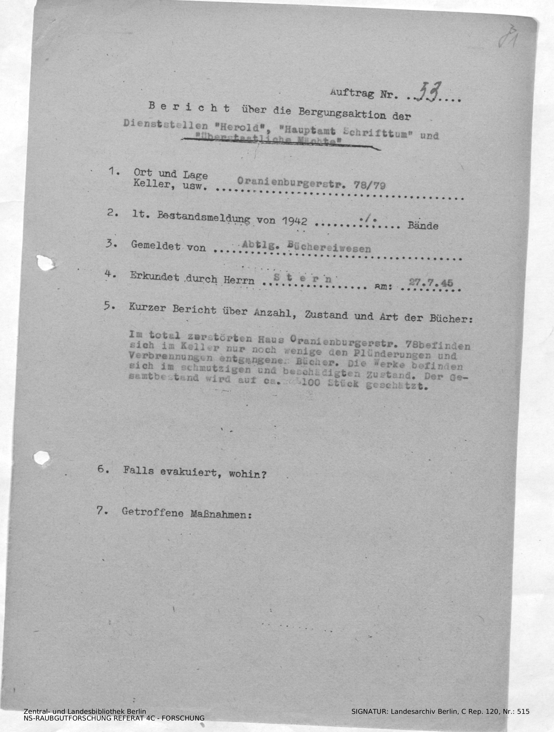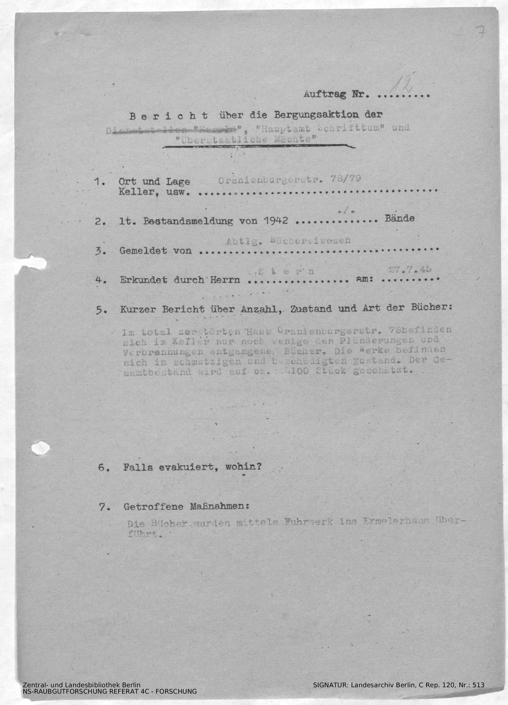 Bergungsnummer in ZLB gefunden