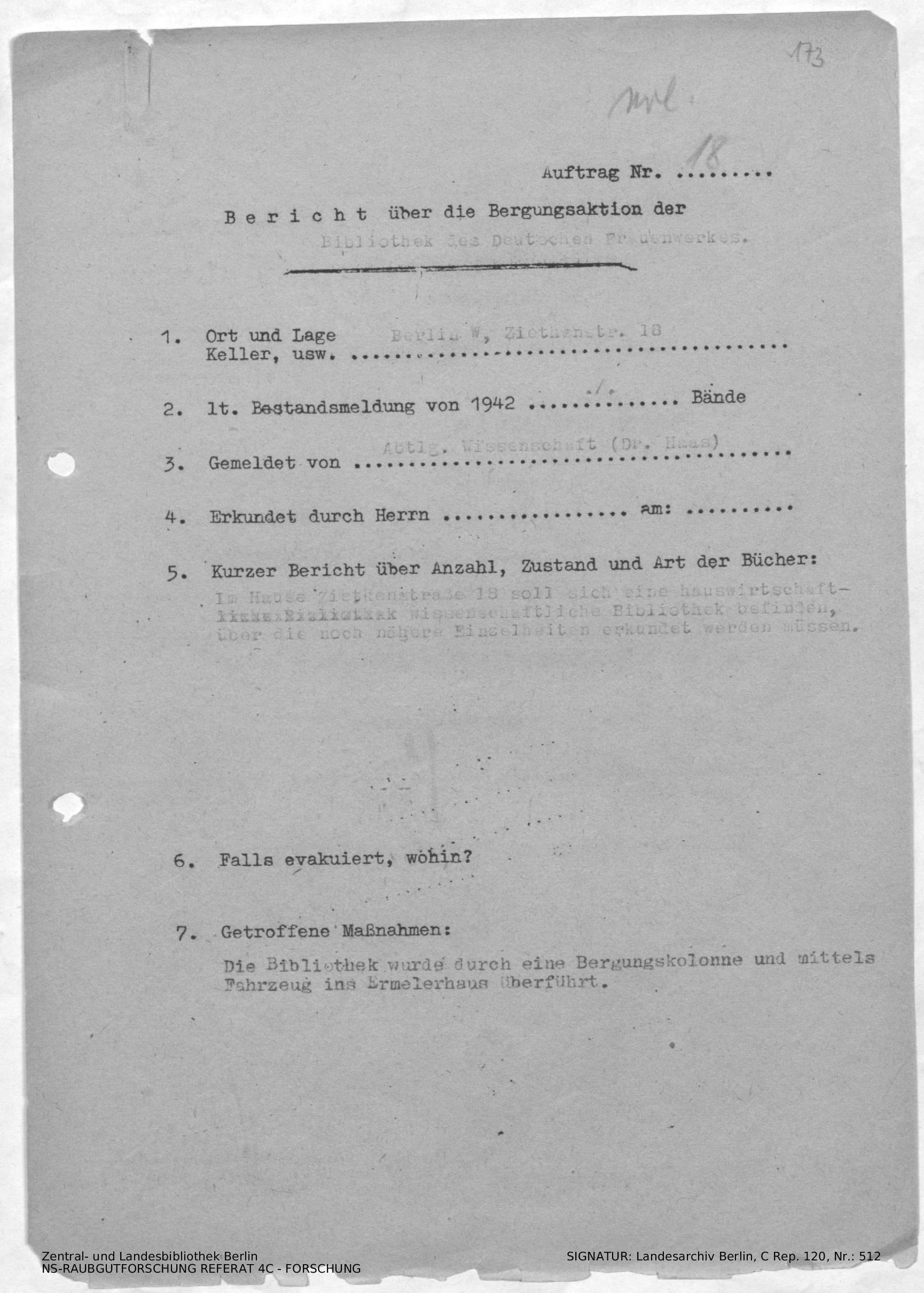 Meldung von Büchern im Keller der ehemaligen Reichsfrauenführung