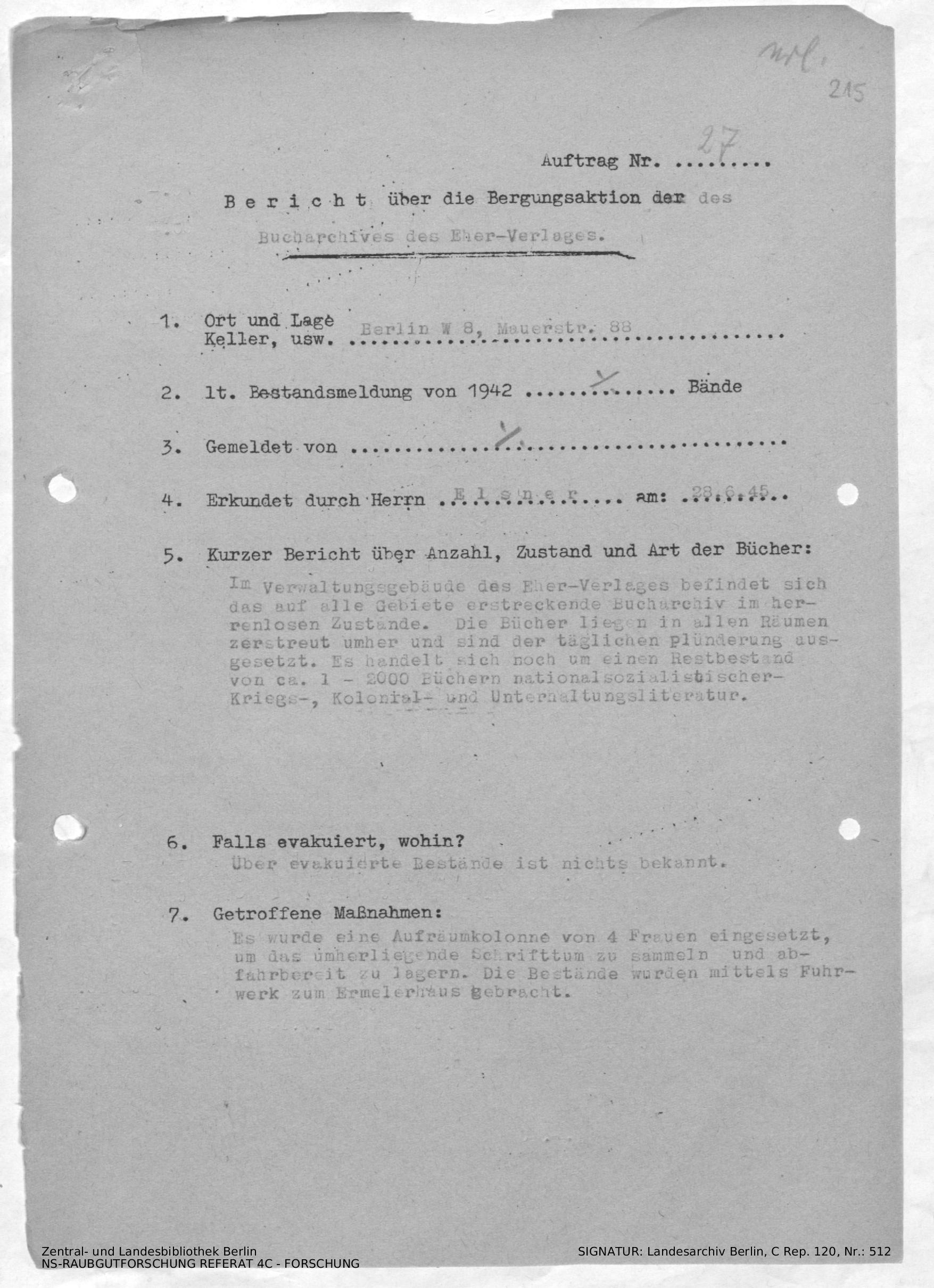Bergungsnummer in ZLB gefunden