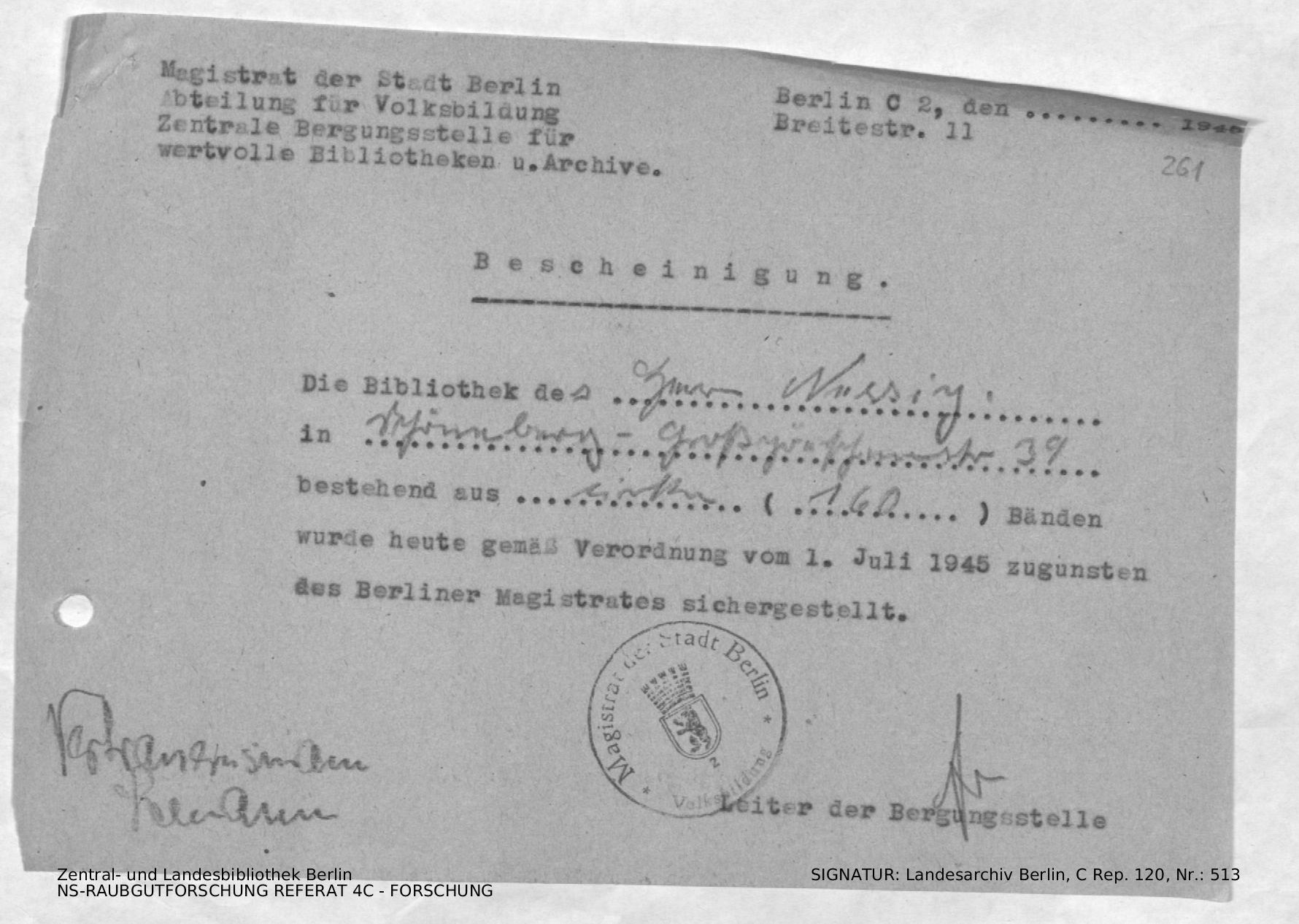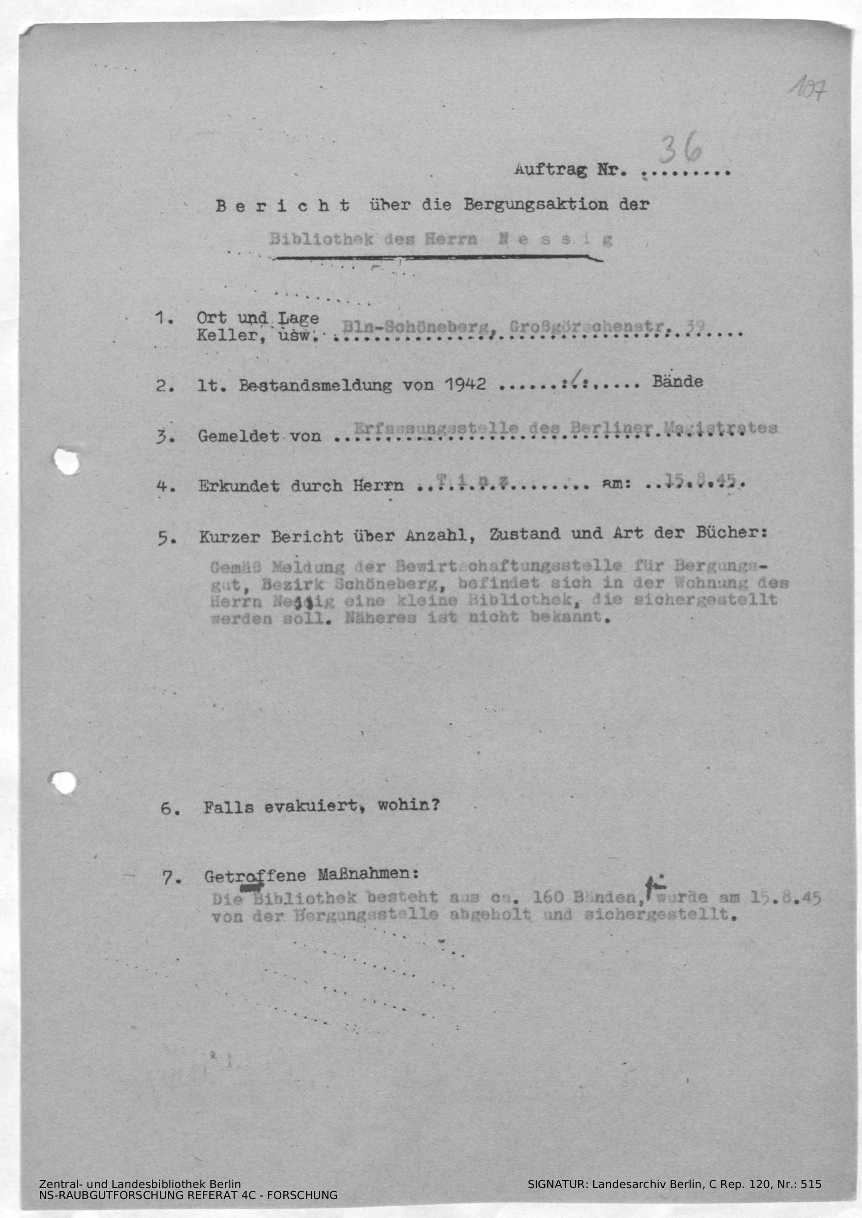 Bergungsnummer in ZLB gefunden