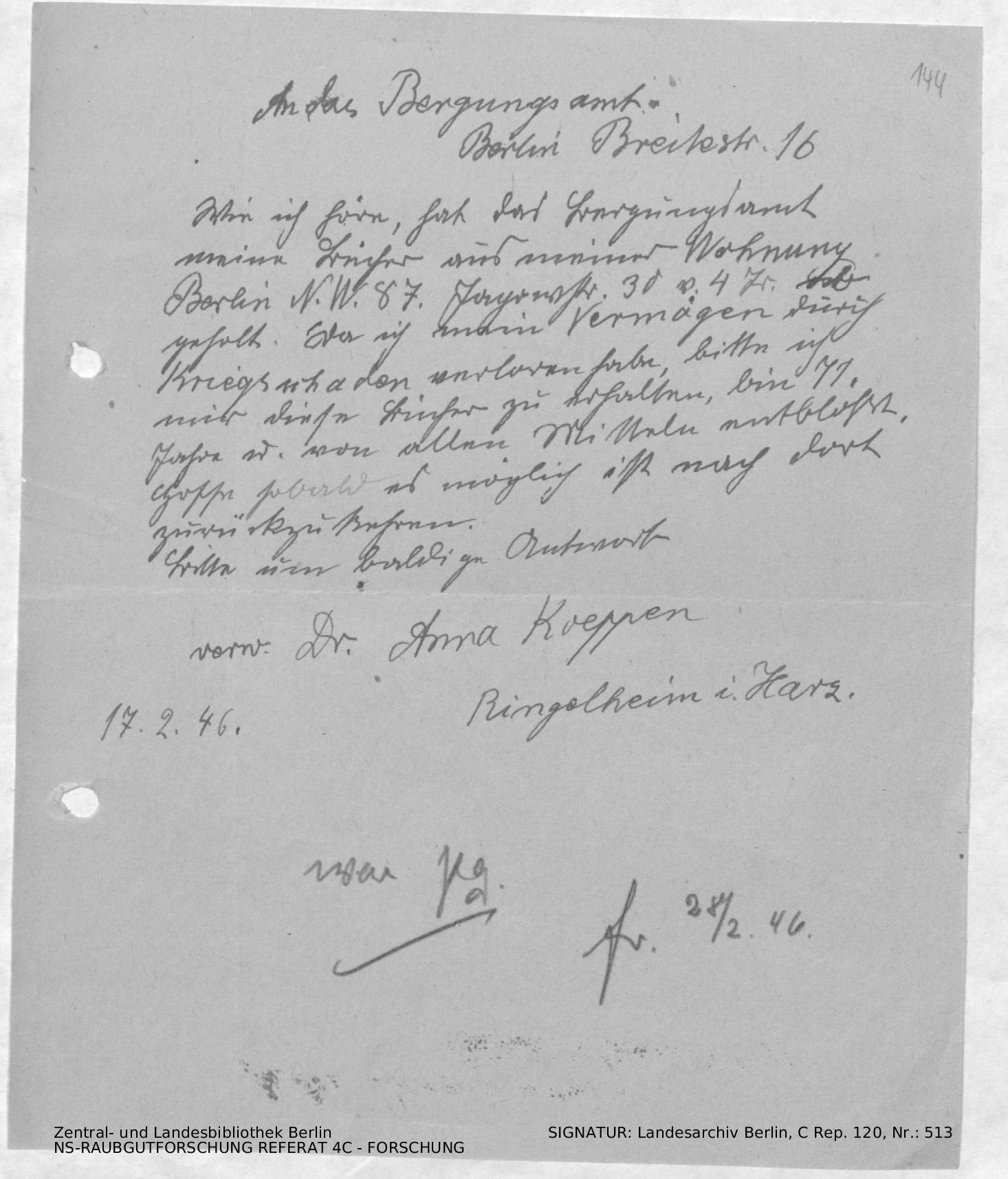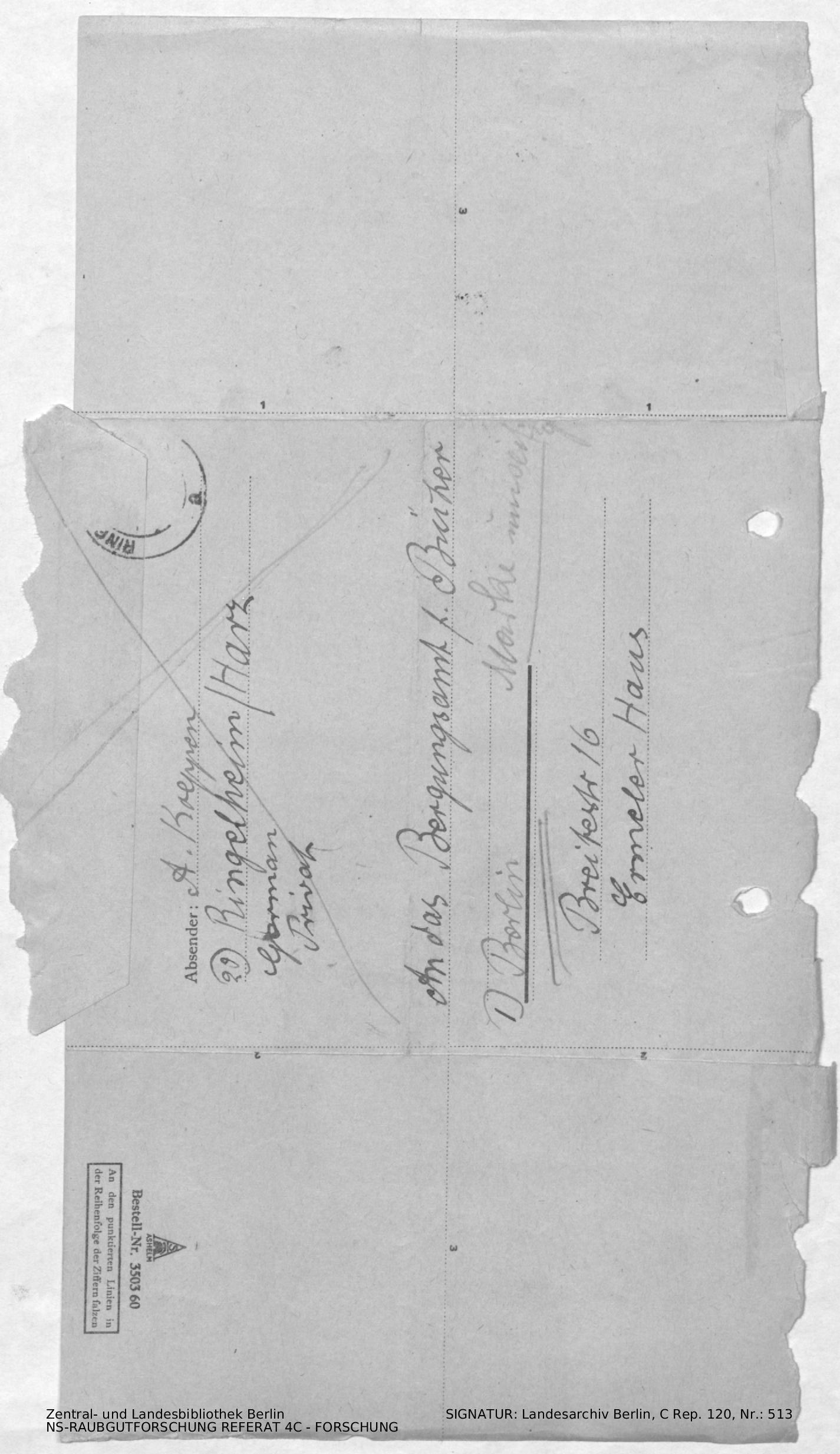 Bergungsnummer in ZLB gefunden: