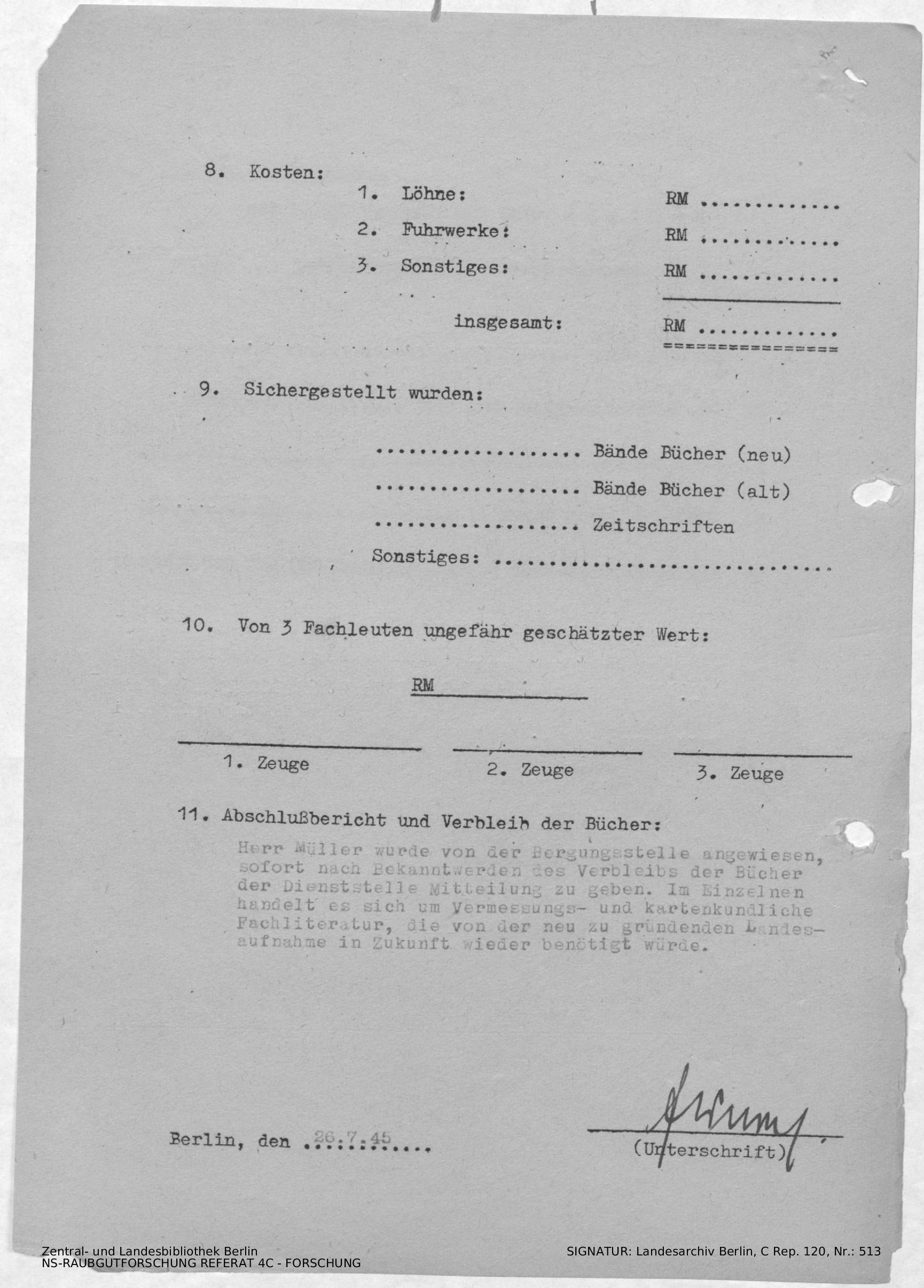 Bergungsnummer in ZLB gefunden