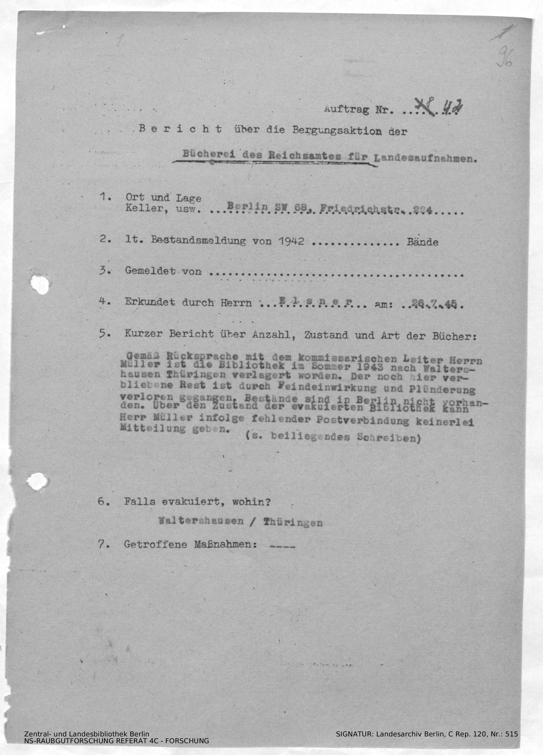 Berlin SW 68, Friedrichstr. 224 / evakuiert nach Waltershausen/Thüringen