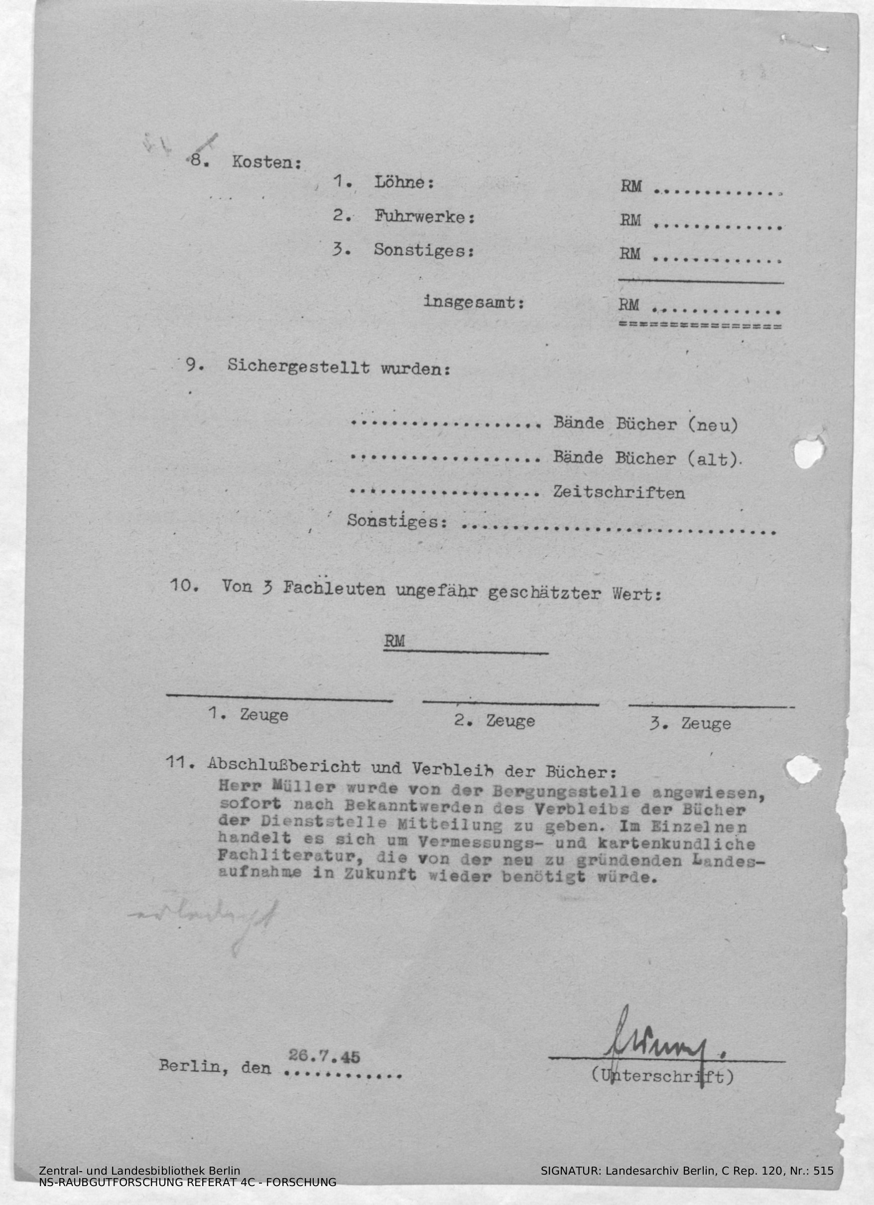 Verbleib der Bücher