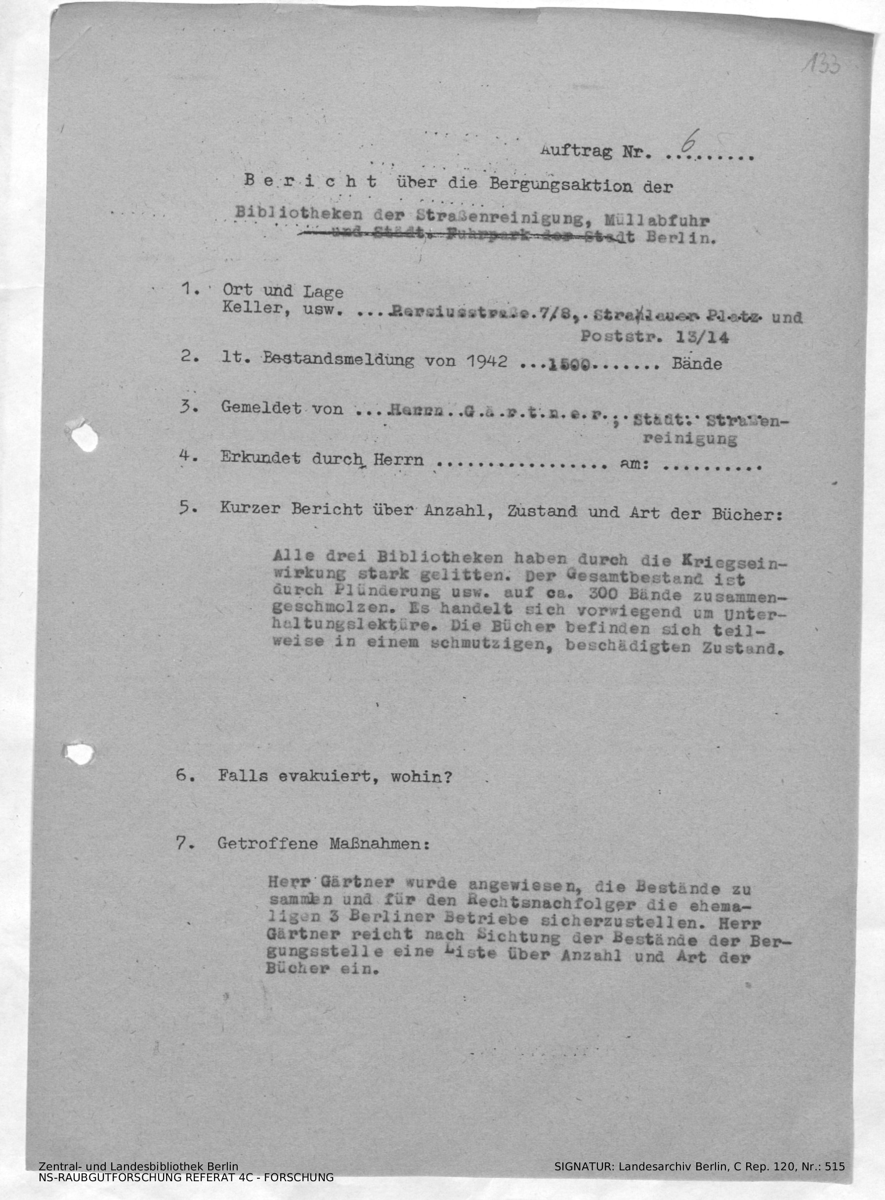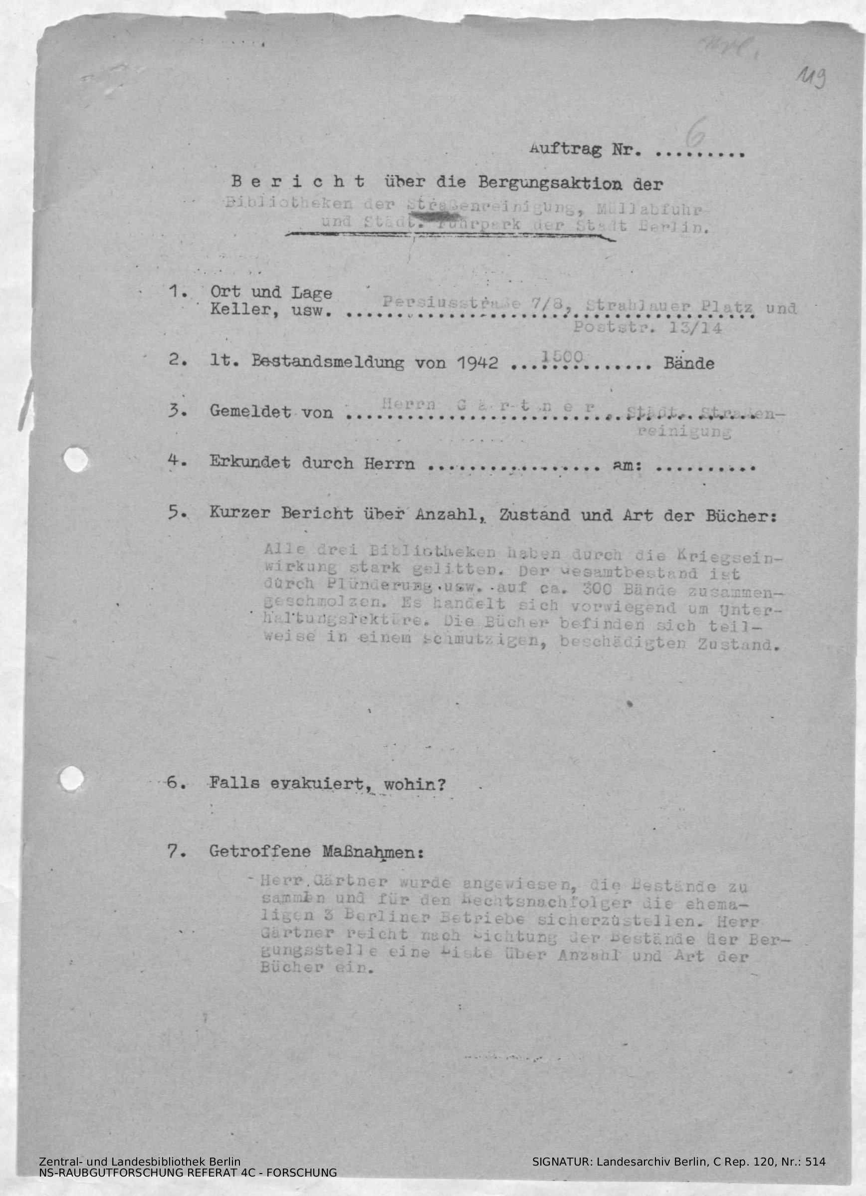 Plünderungen / ein Herr Gärtner wurde angewiesen die Bücher für den Rechtsnachfolger der 3 Berliner Betriebe sicherzustellen...