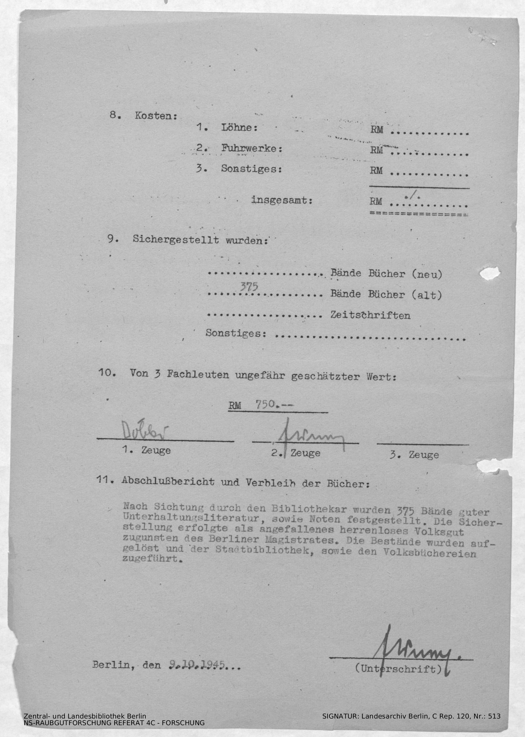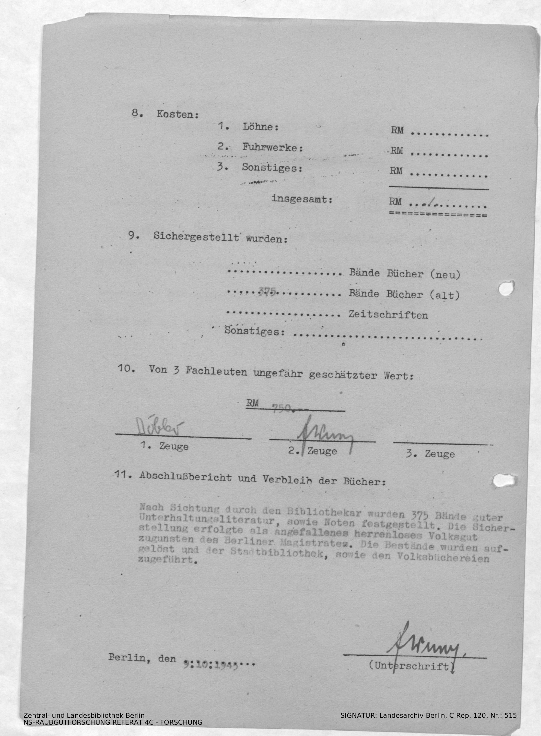 Verbleib der Bücher
