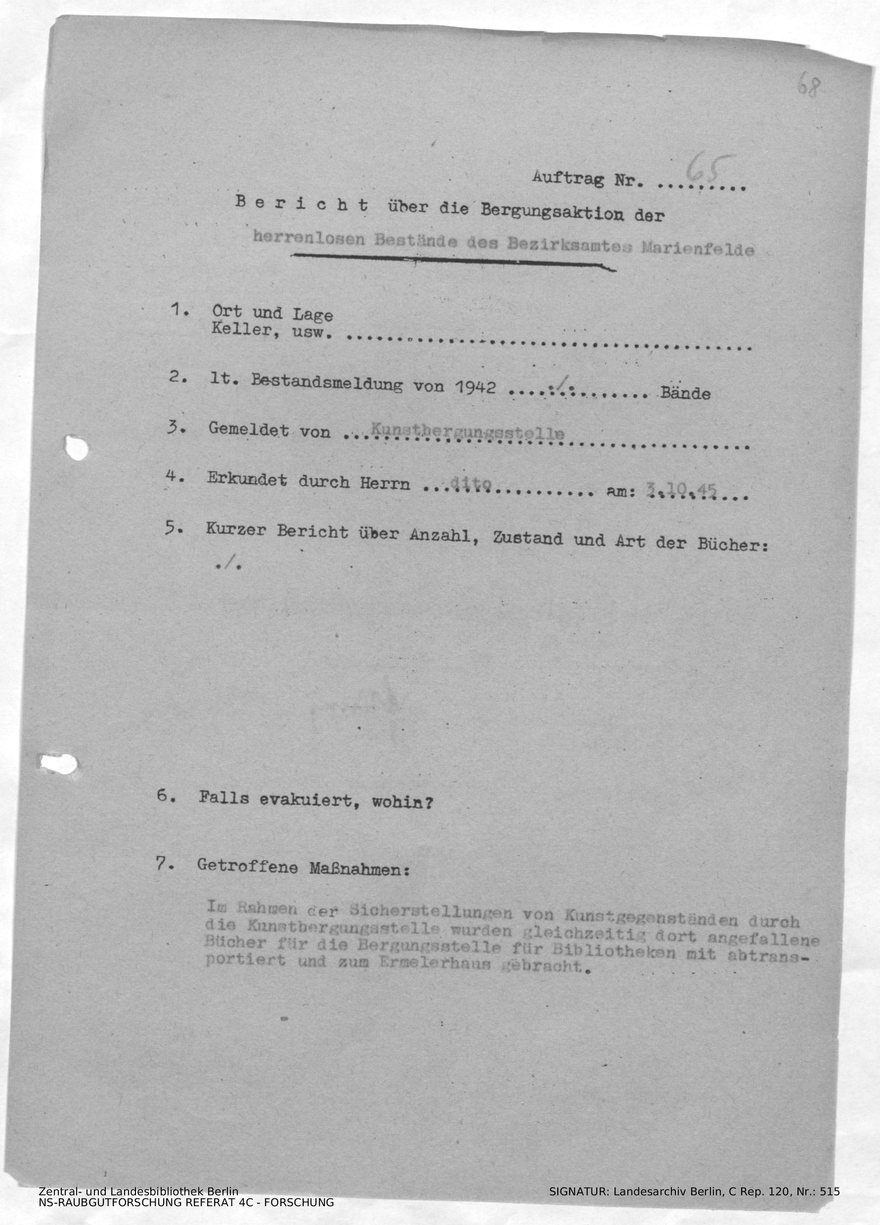 Bergungsnummer in ZLB gefunden