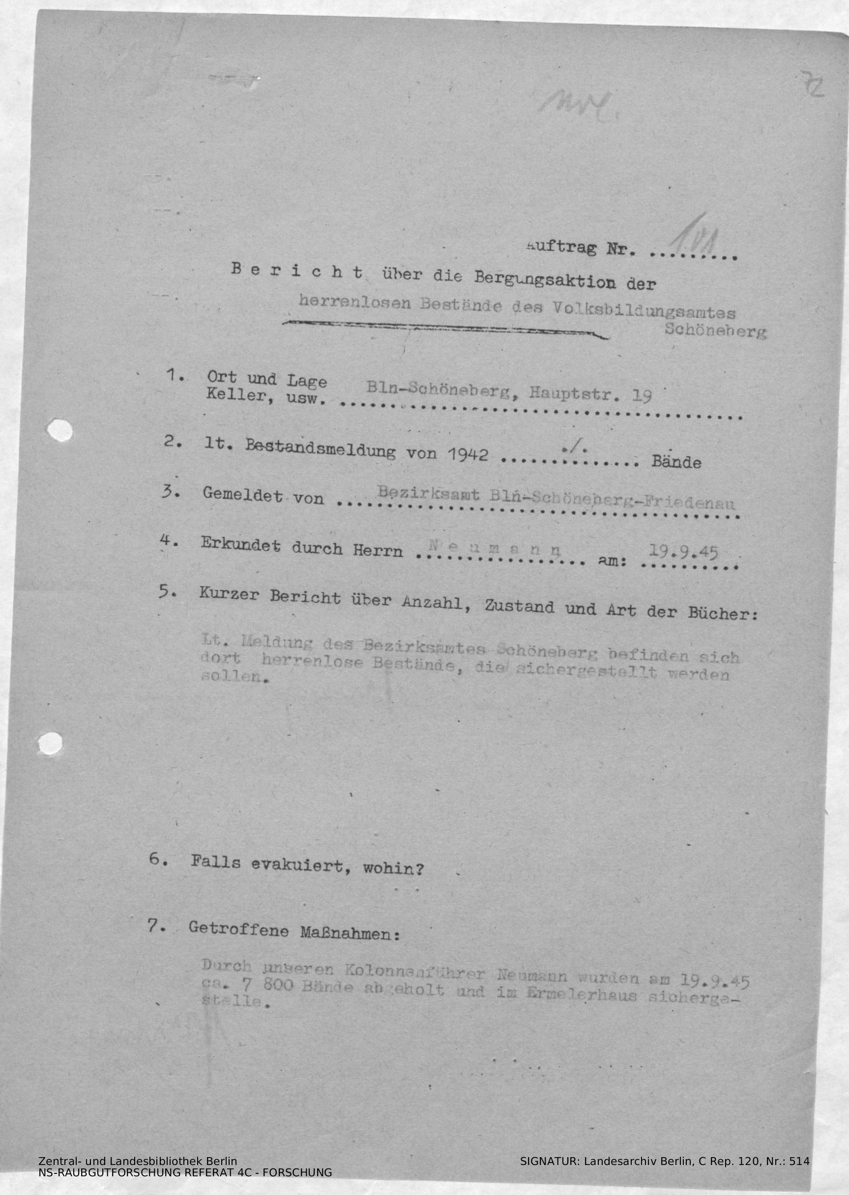 Bergungsnummer in ZLB gefunden