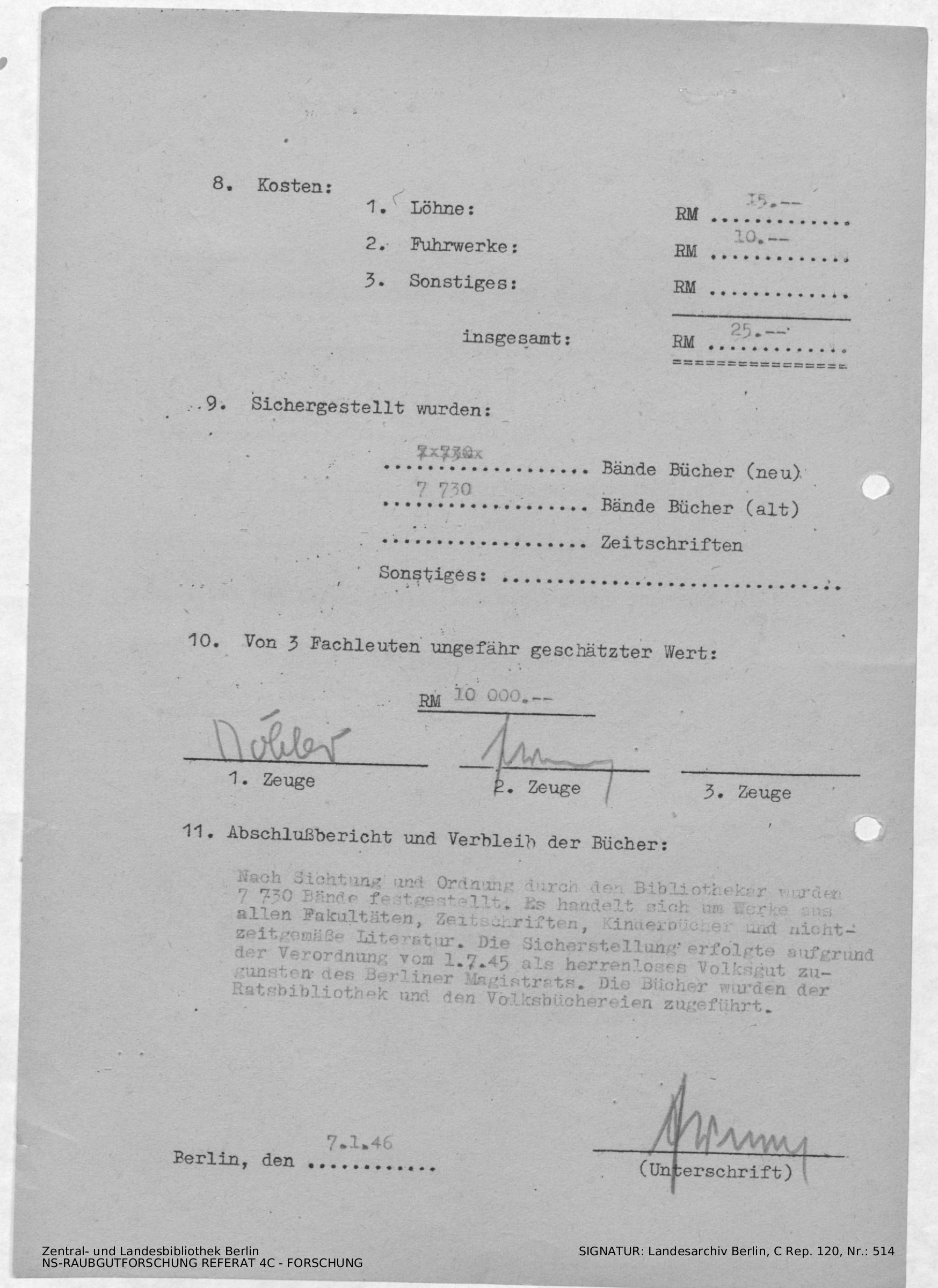 Verbleib der Bücher