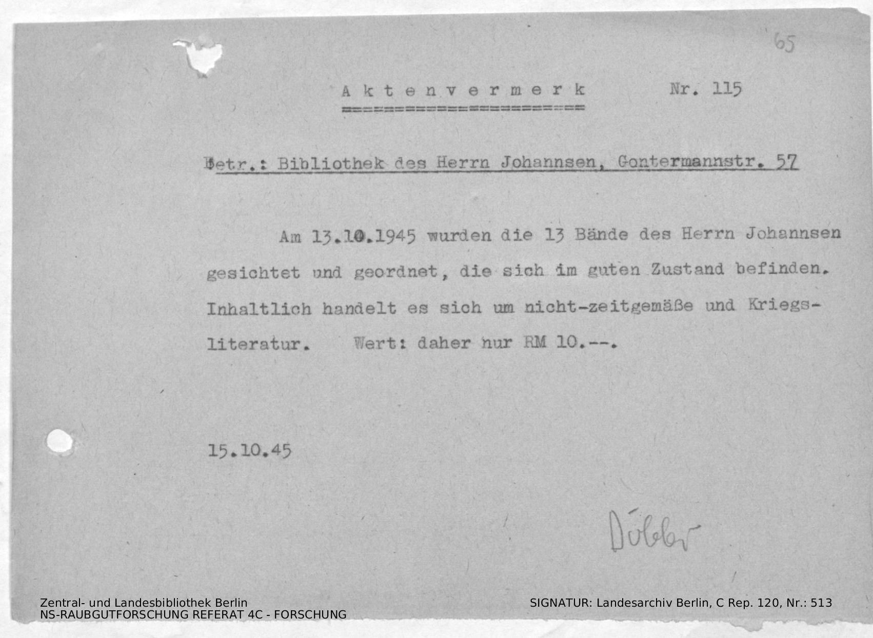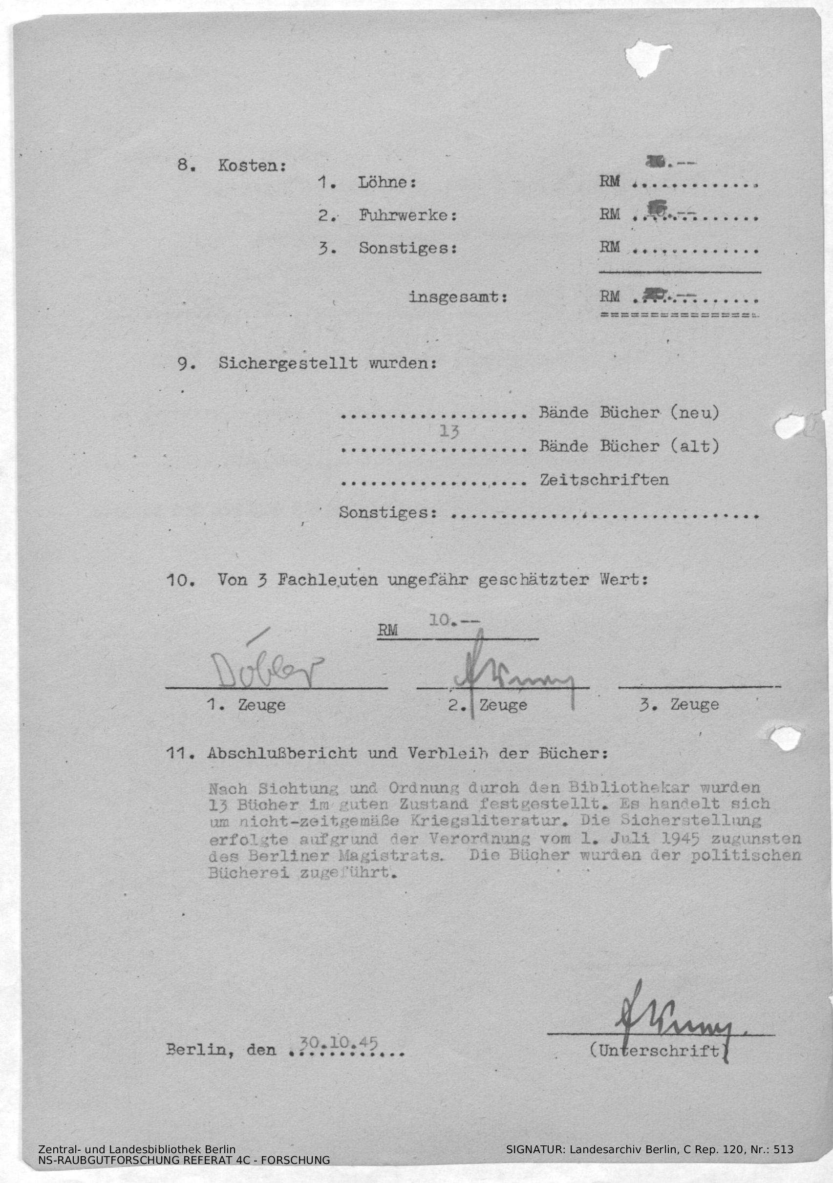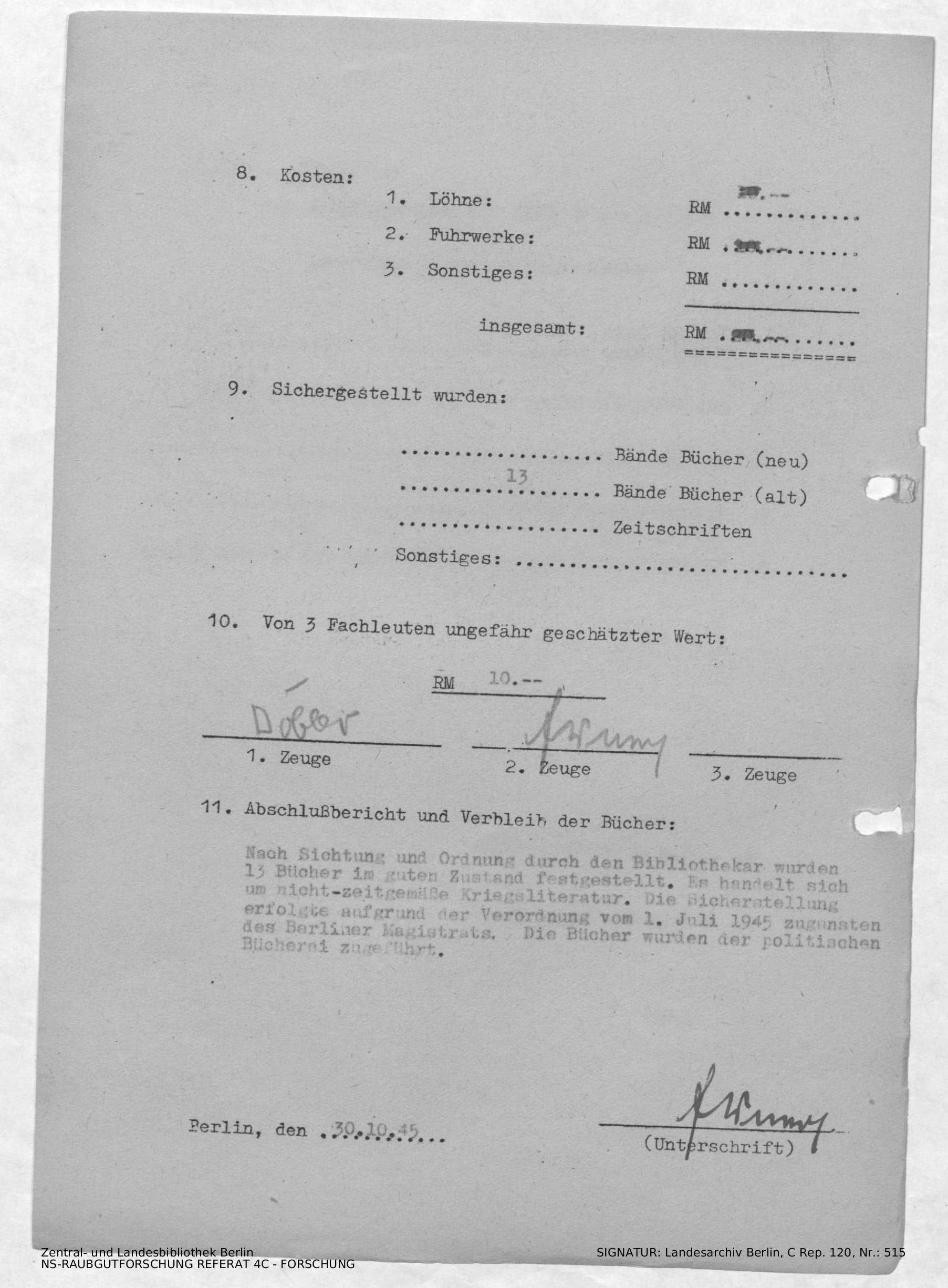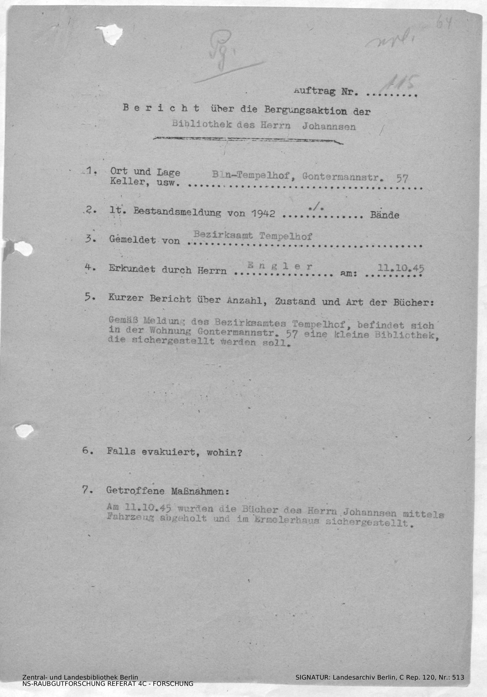 Bergungsnummer in ZLB gefunden