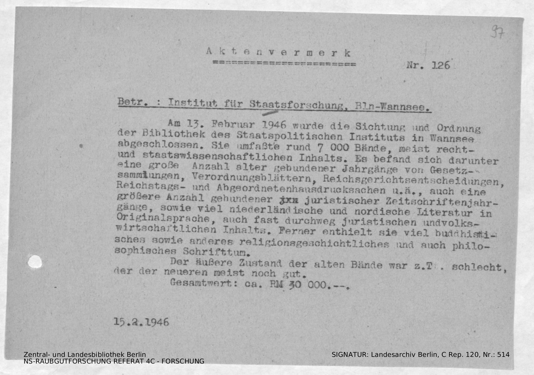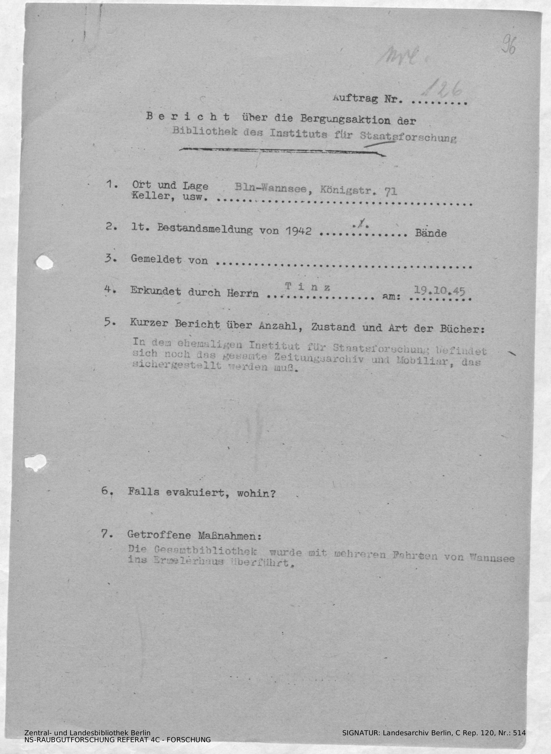 Bergungsnummer in ZLB gefunden