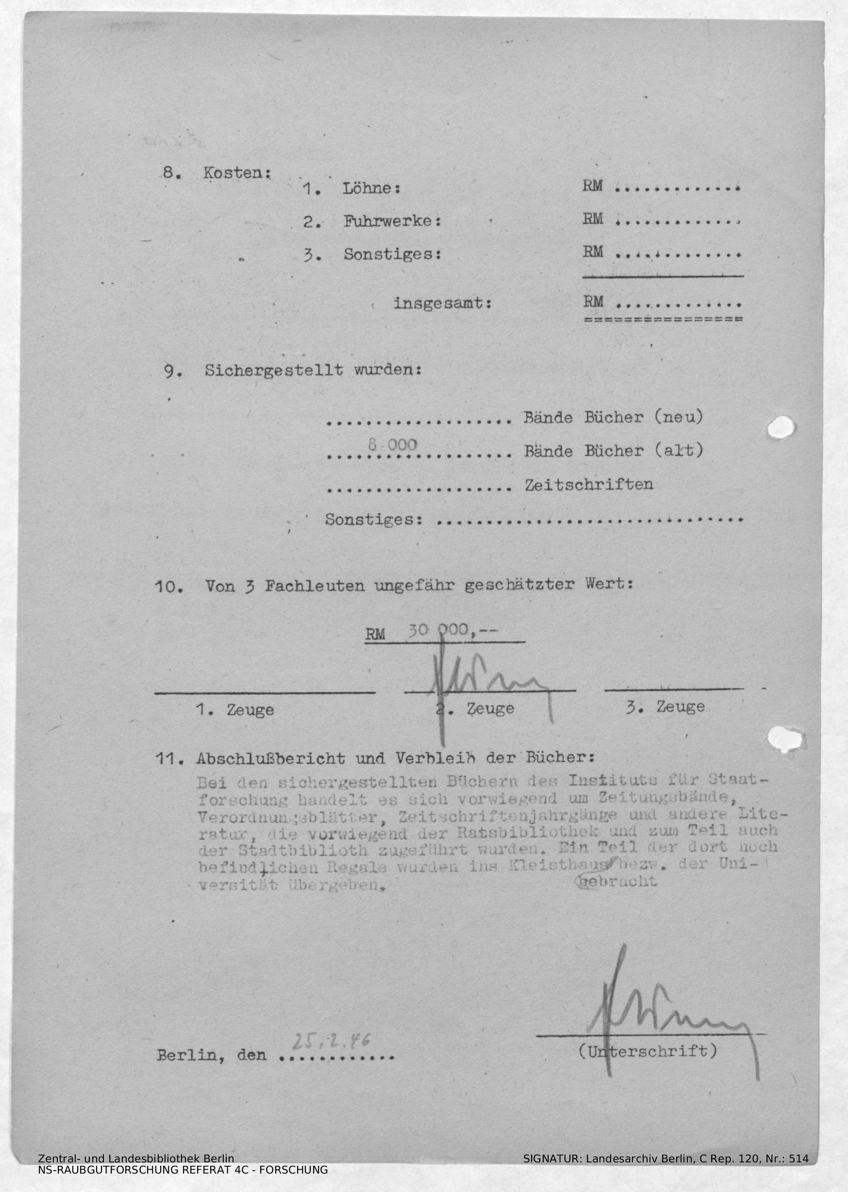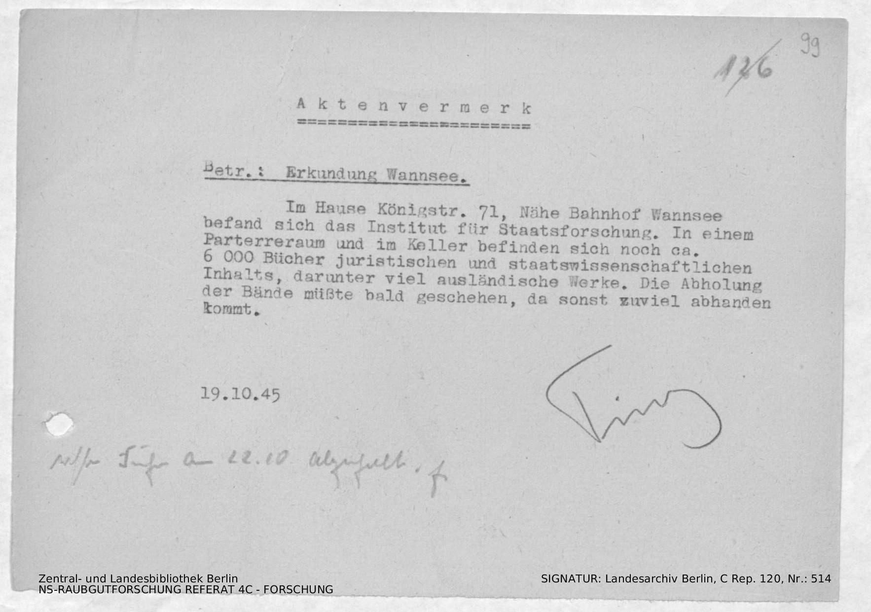 Verbleib der Bücher