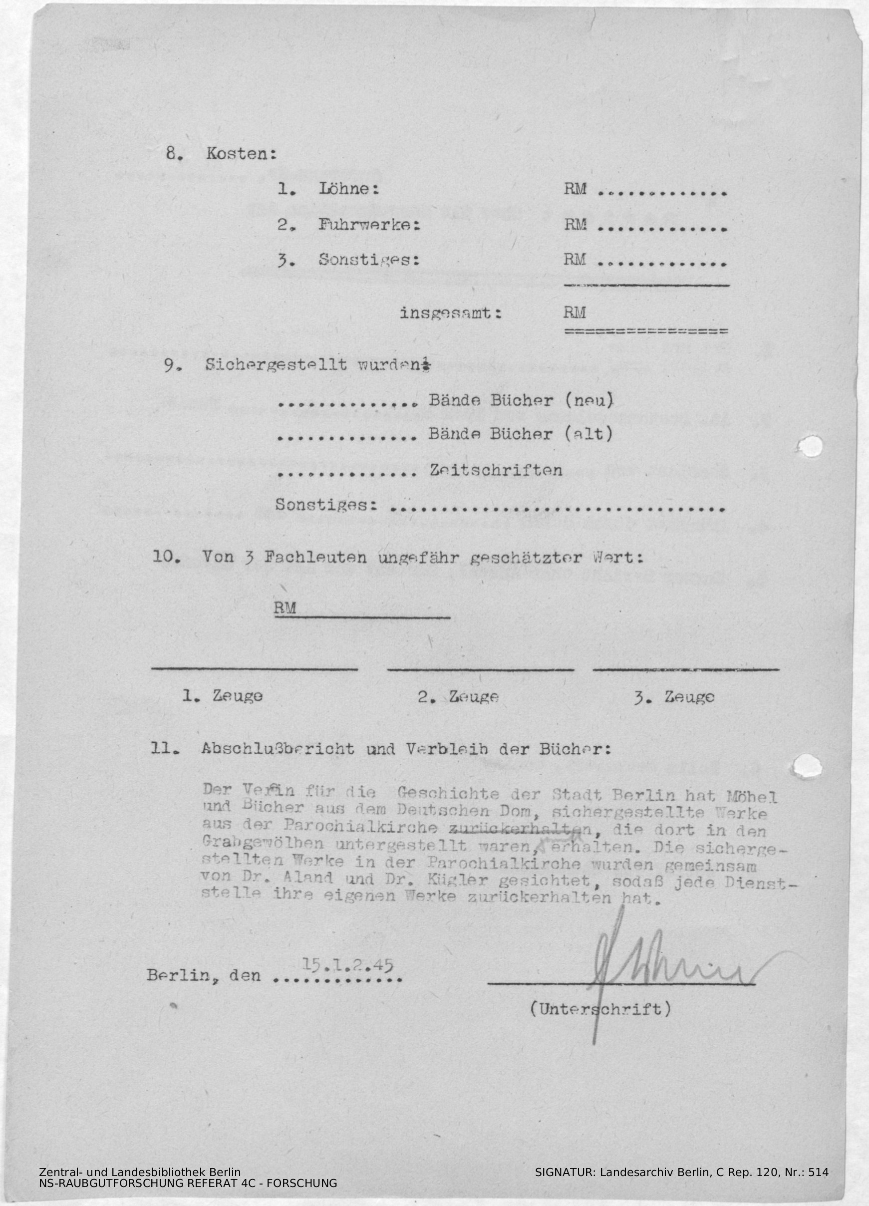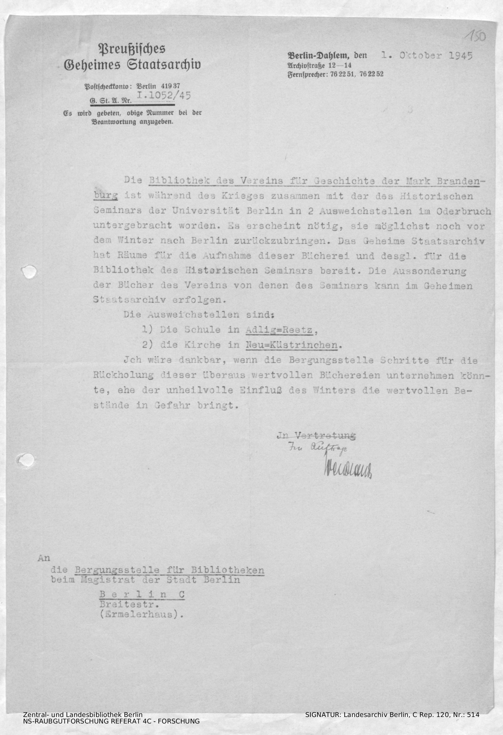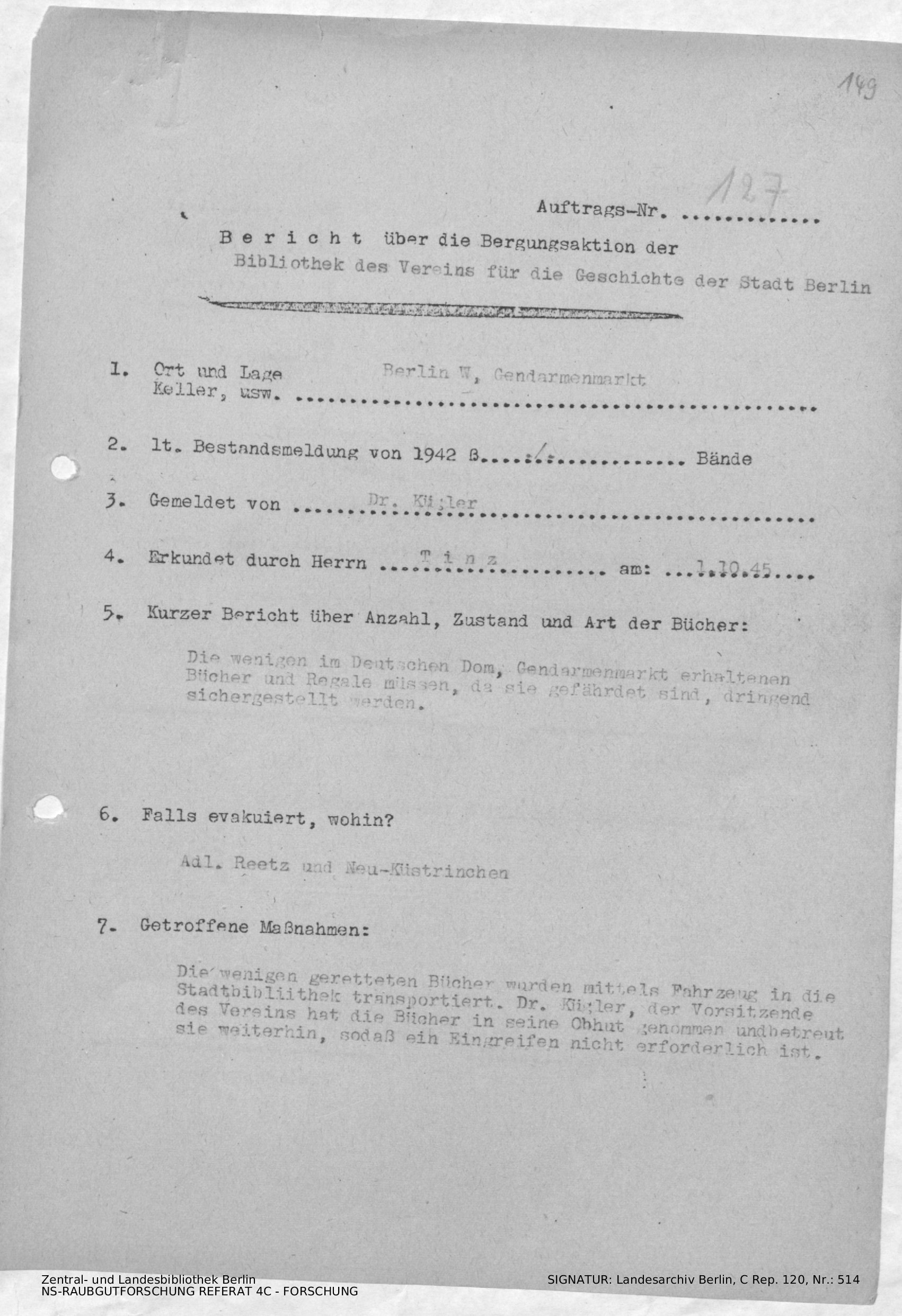Bergungsnummer in ZLB gefunden