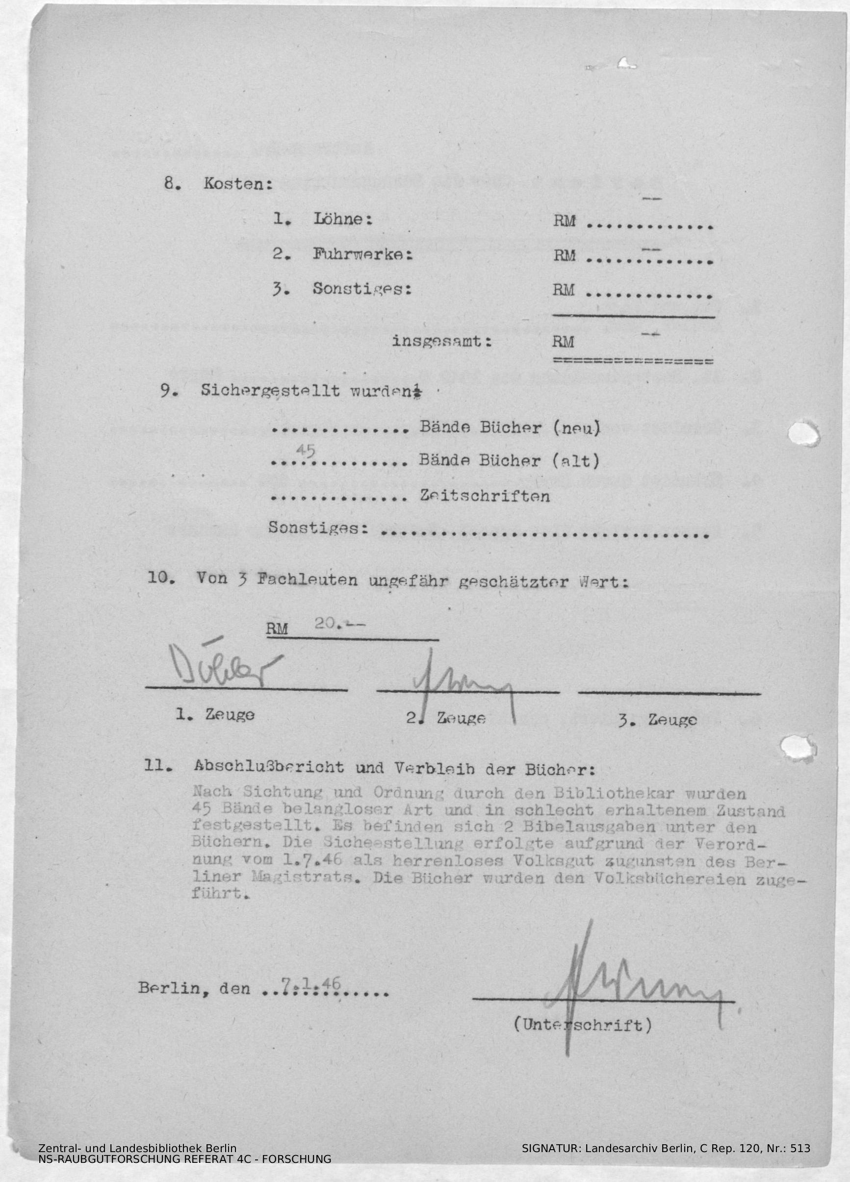 Verbleib der Bücher