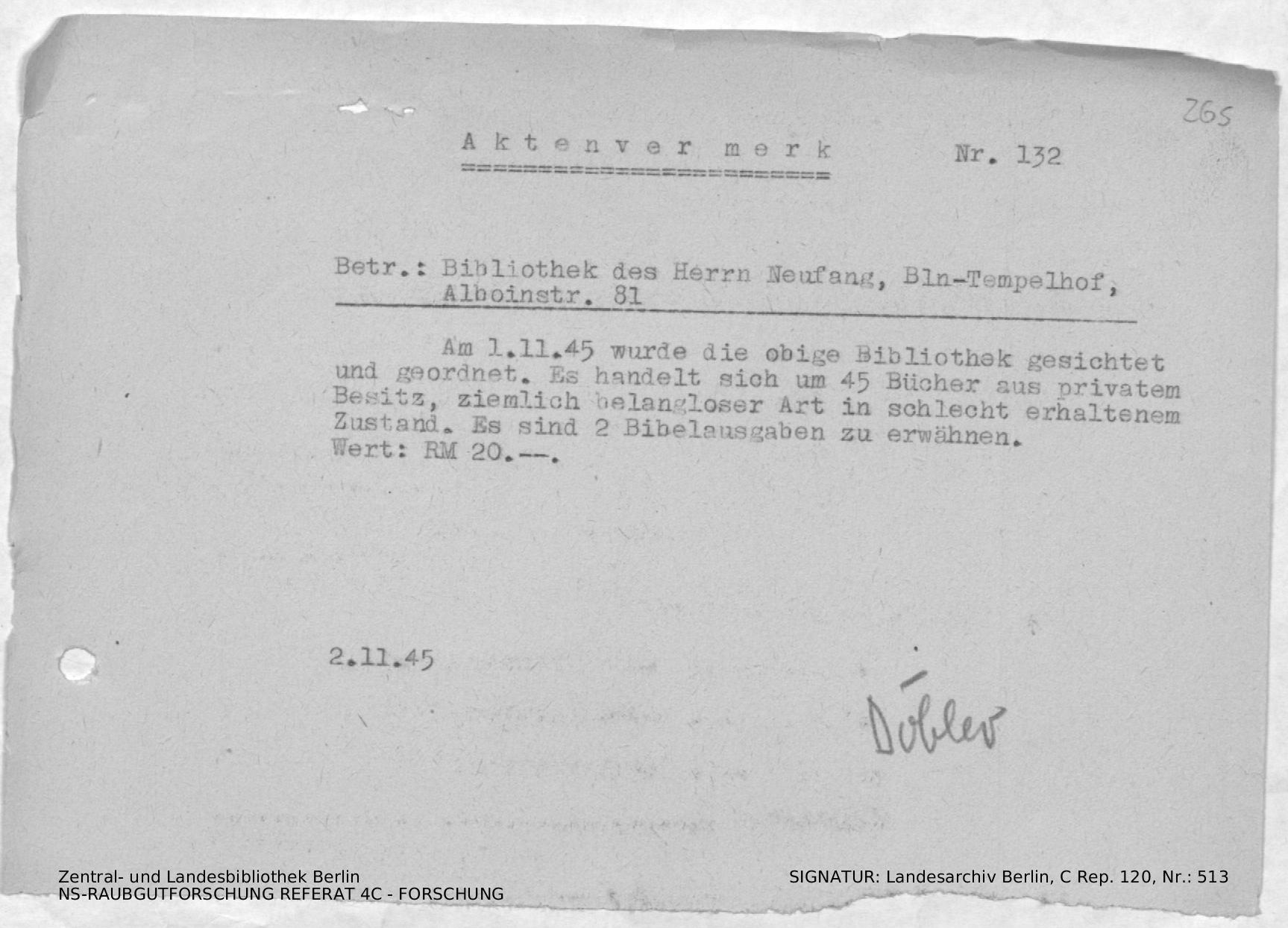 Bergungsnummer in ZLB gefunden