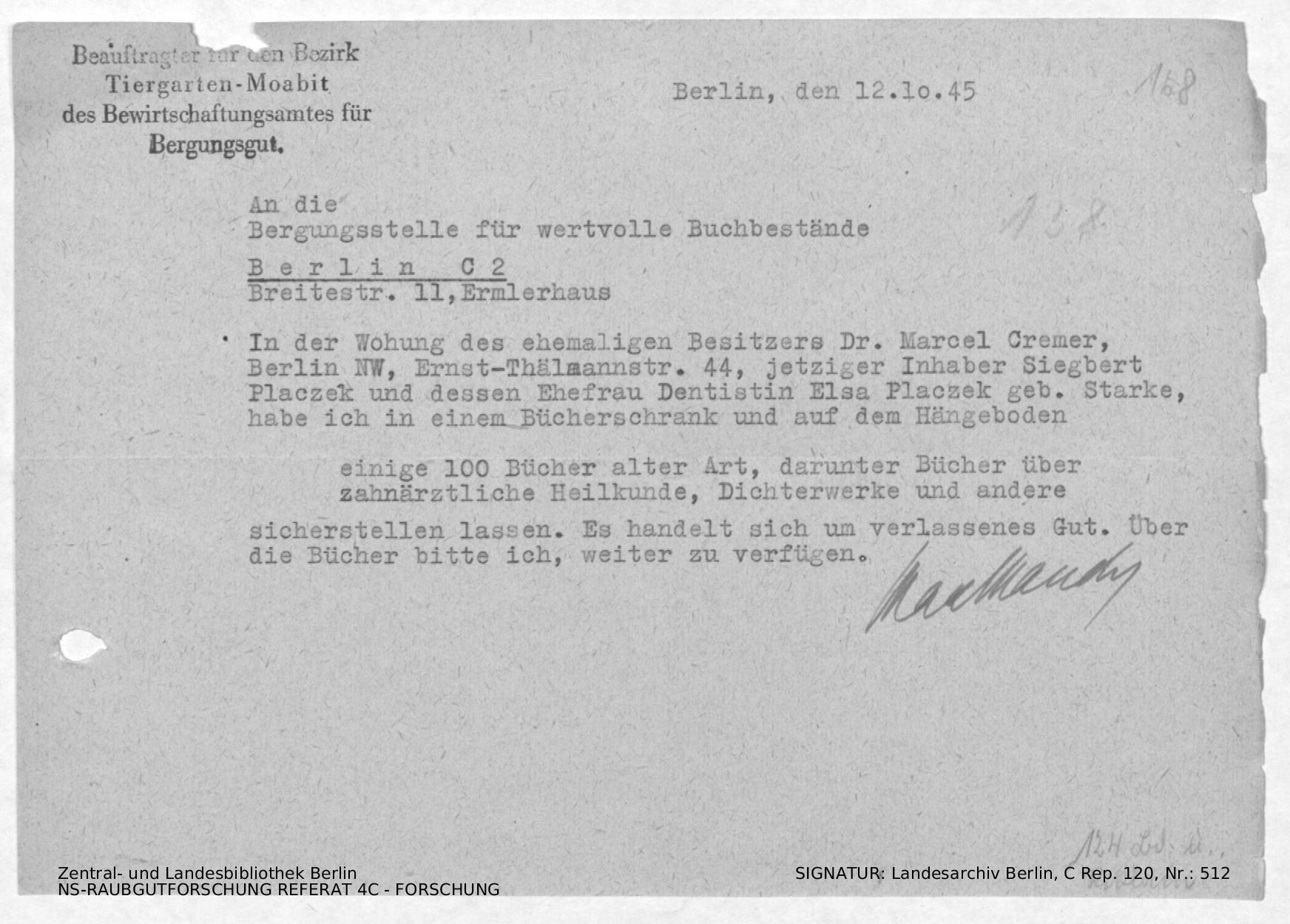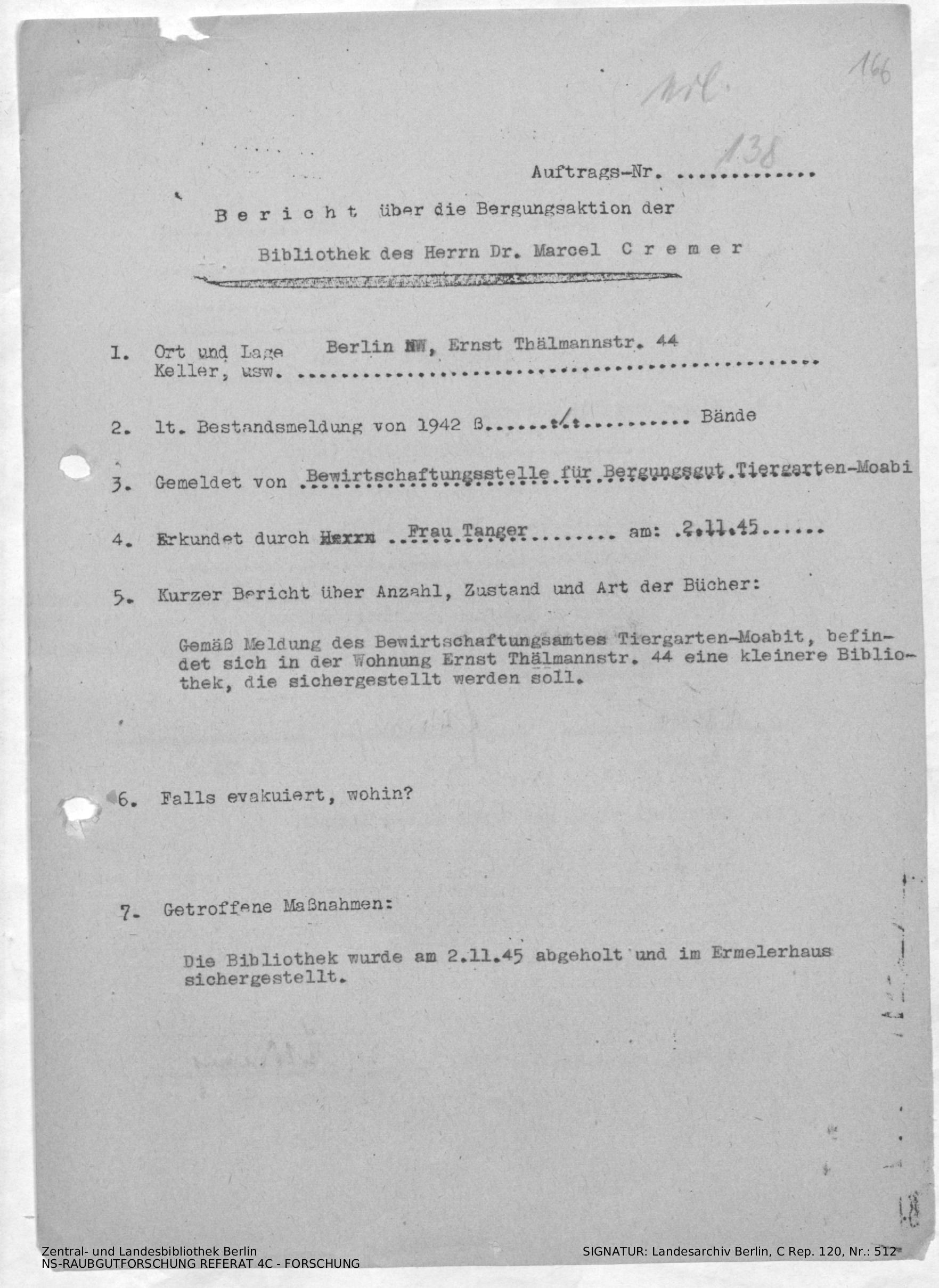 Bergungsnummer in ZLB gefunden