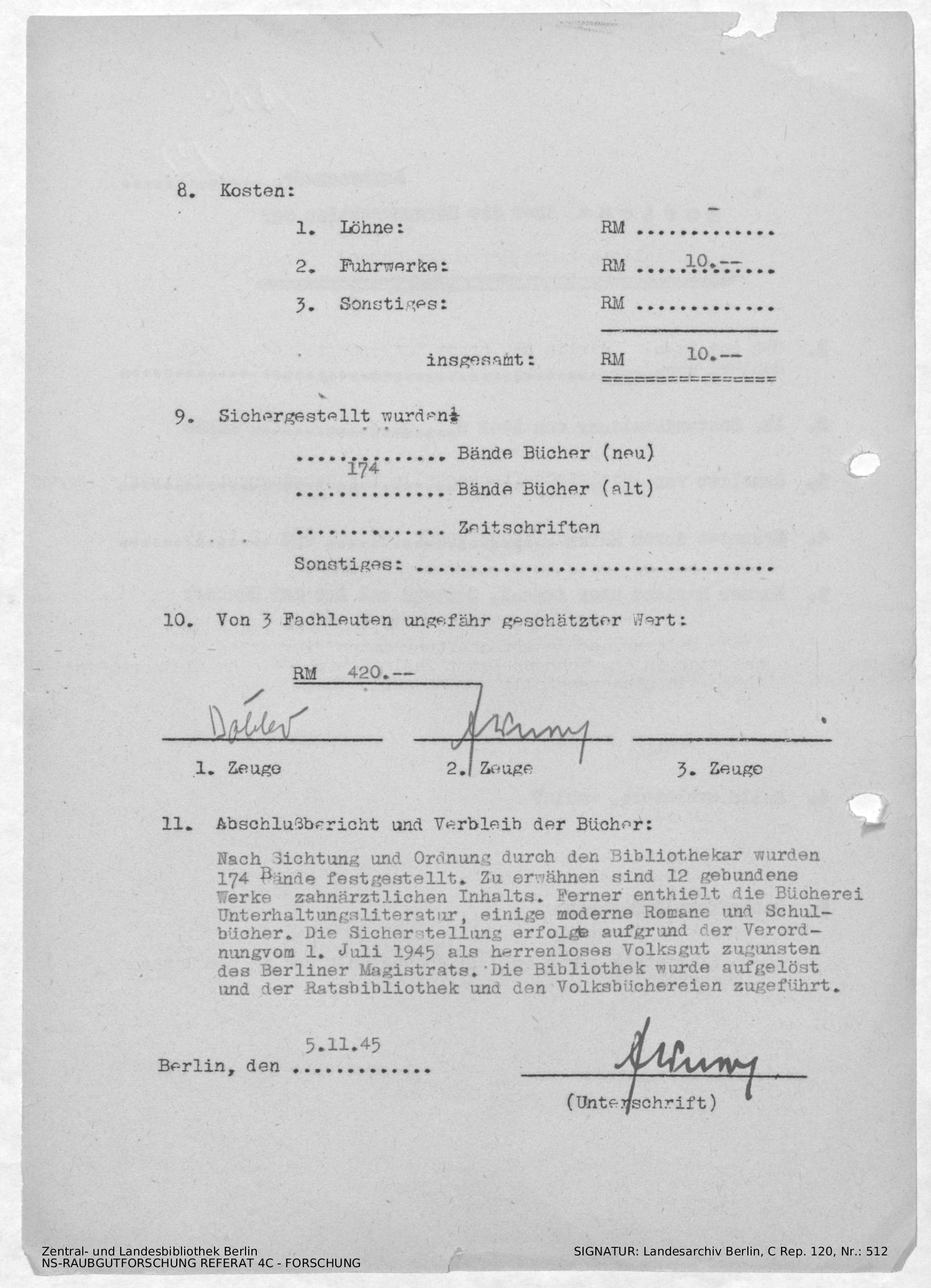Verbleib der Bücher