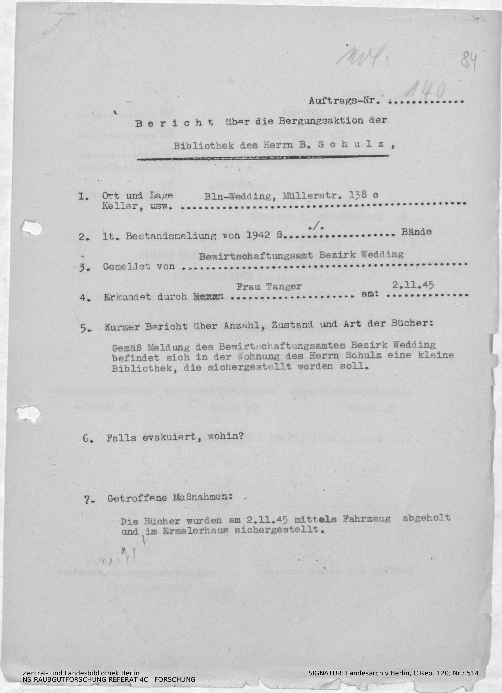 Bergungsnummer in ZLB gefunden