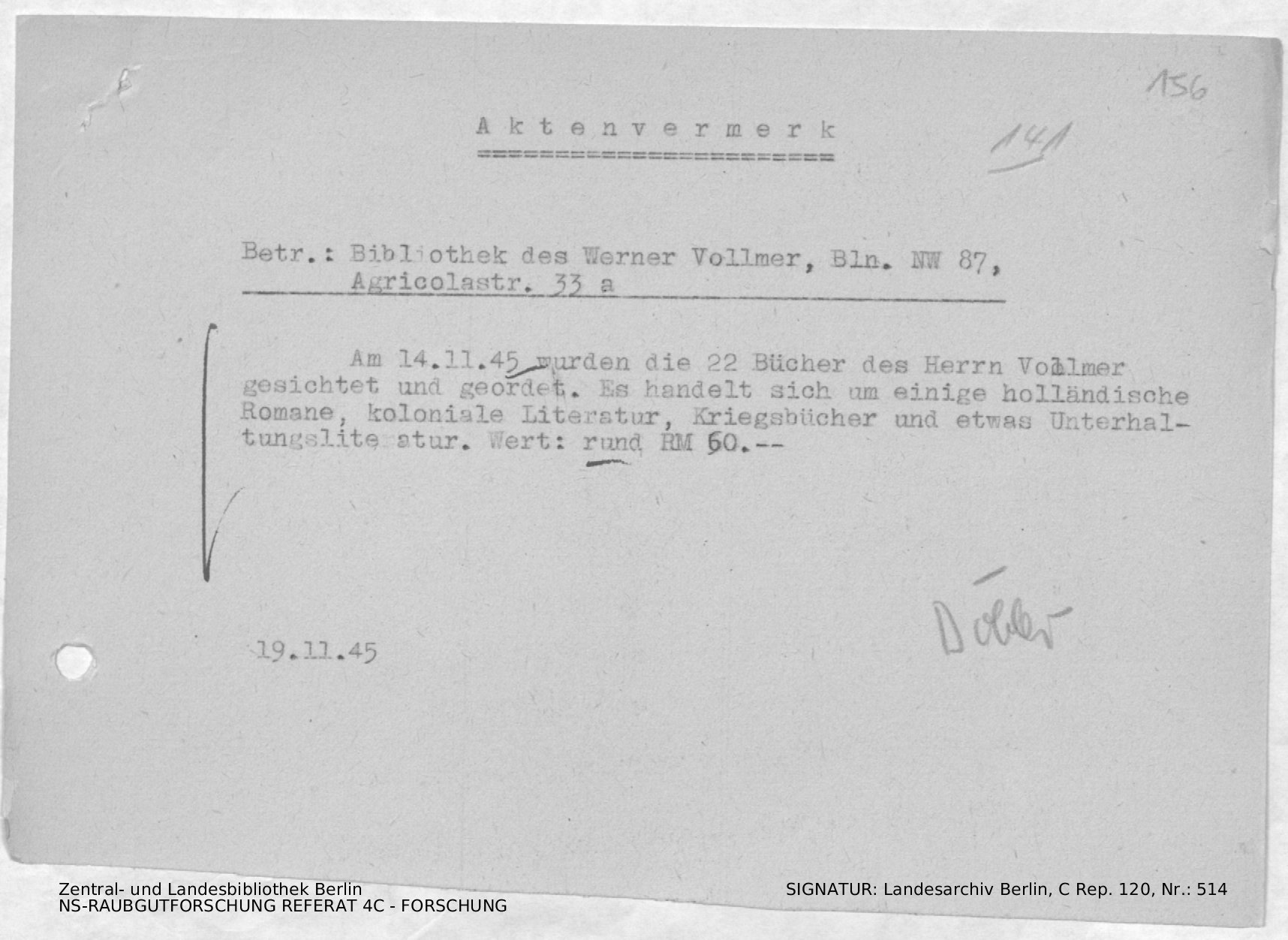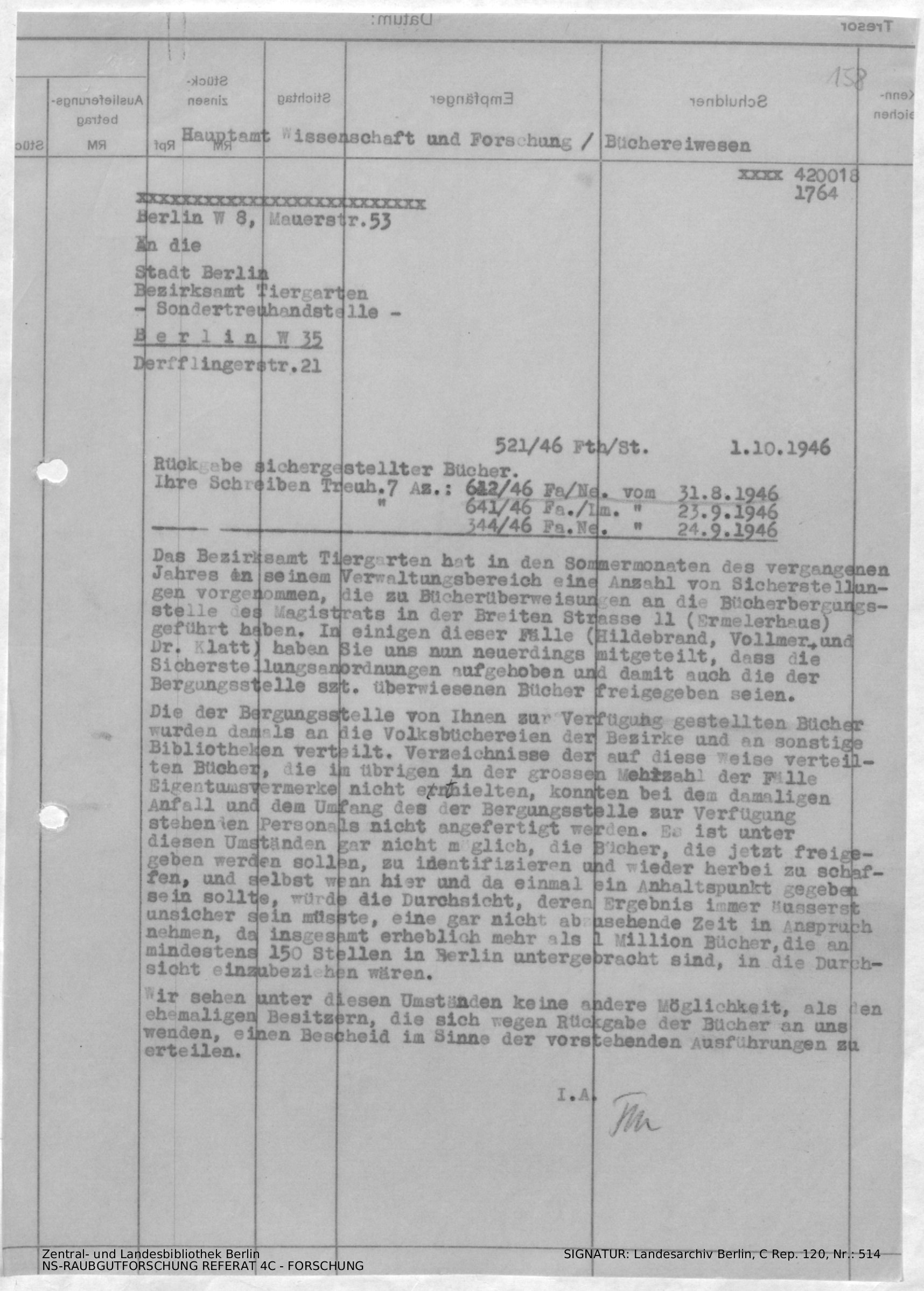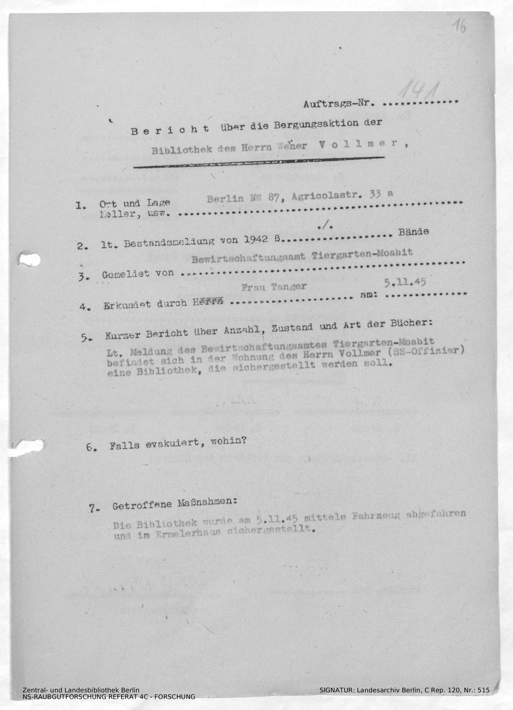 Bergungsnummer in ZLB gefunden