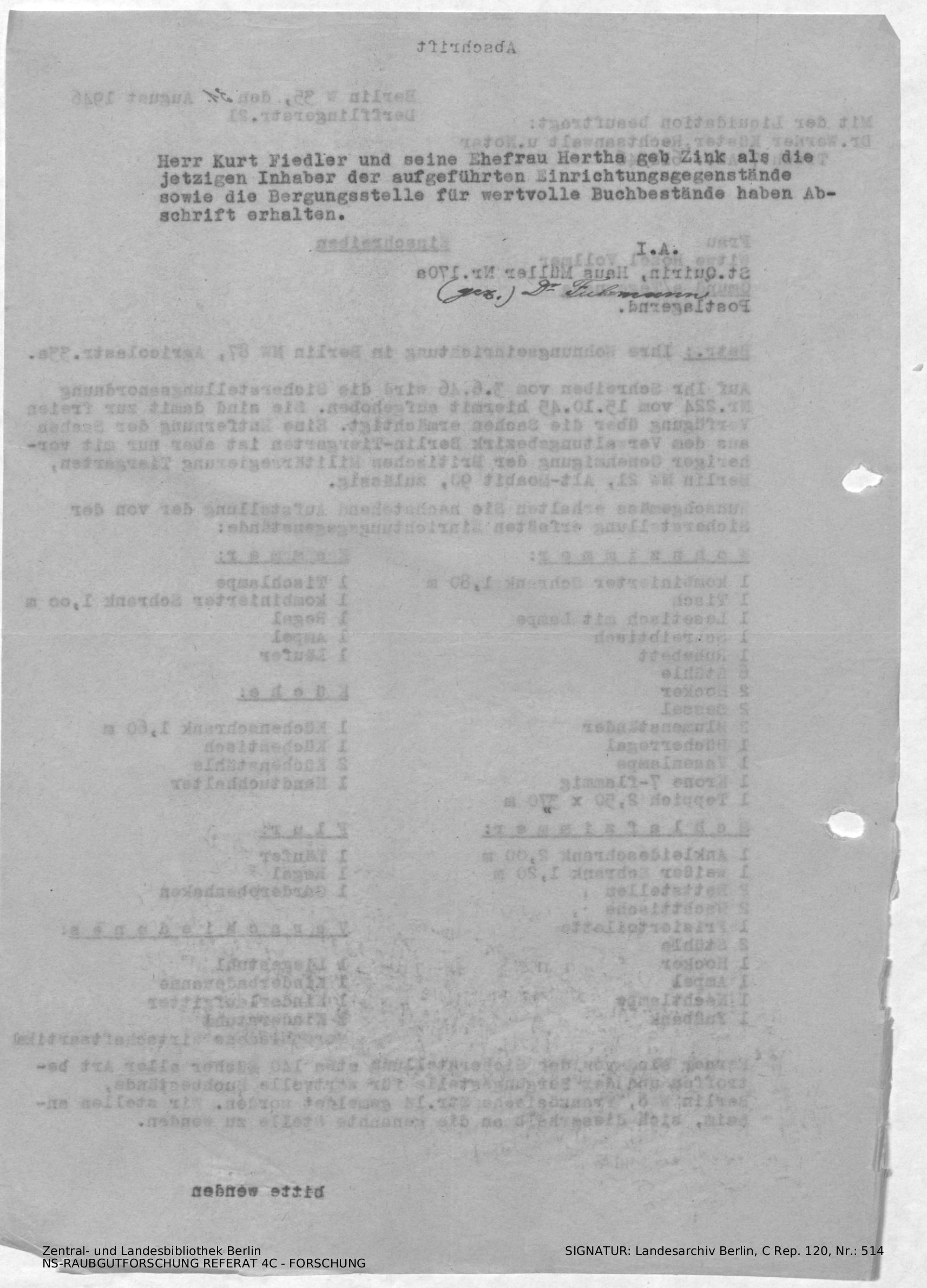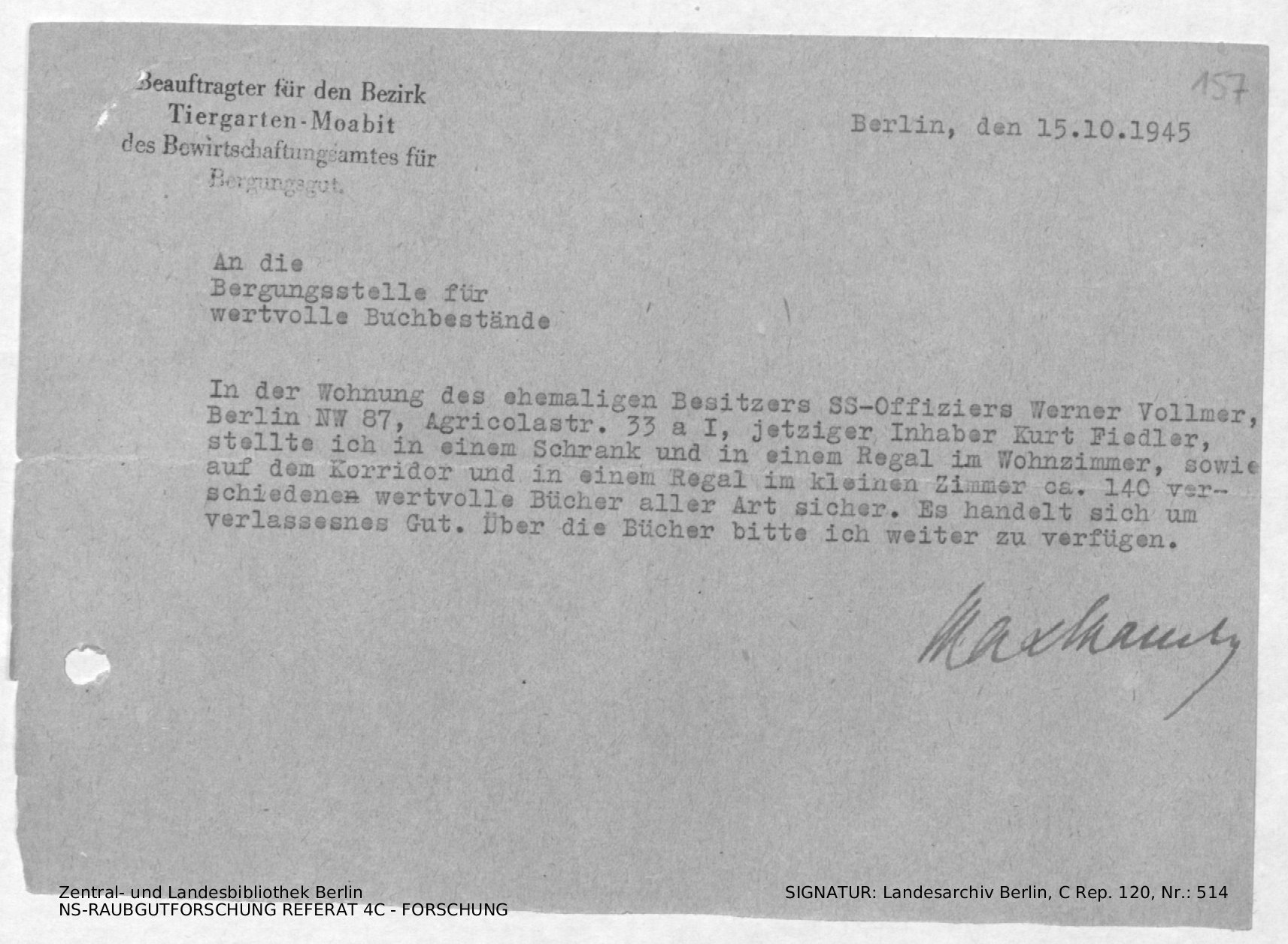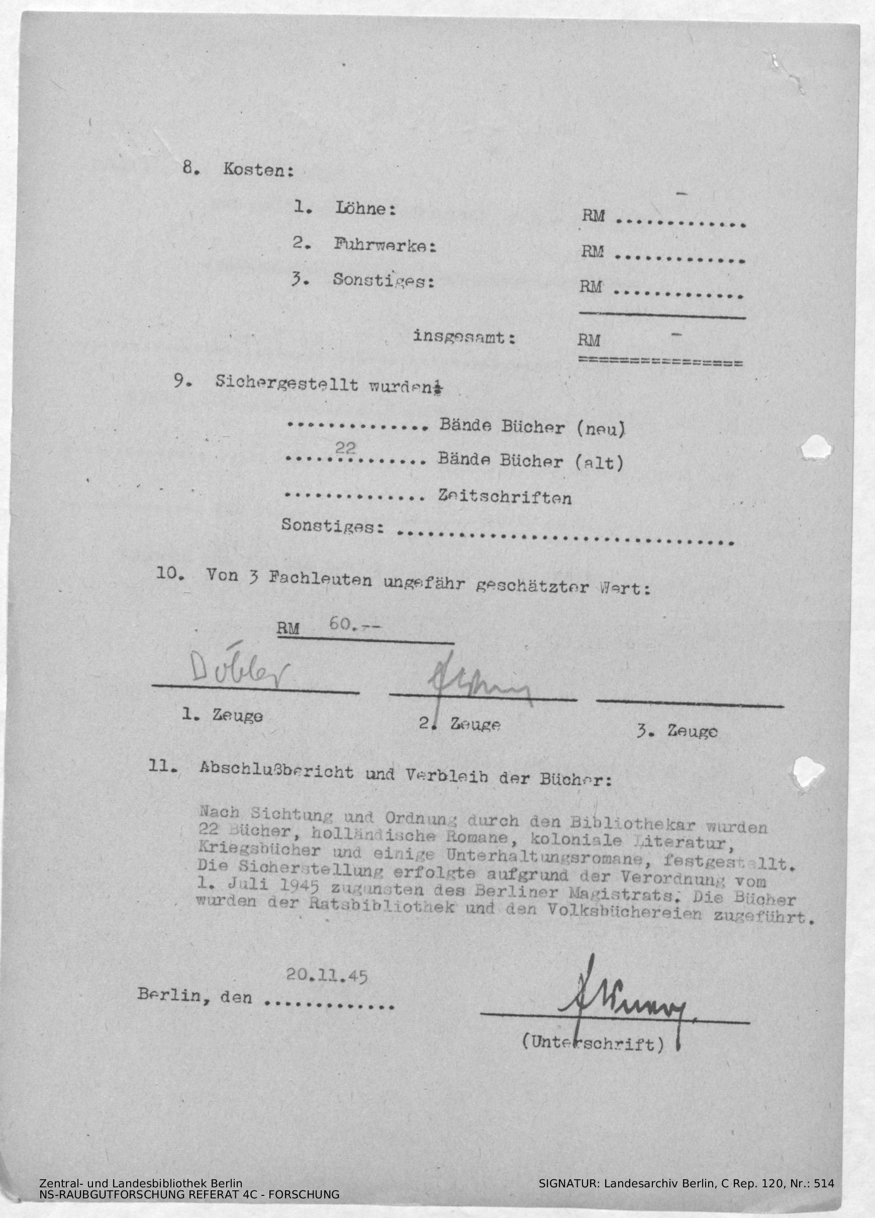 Bergungsnummer in ZLB gefunden