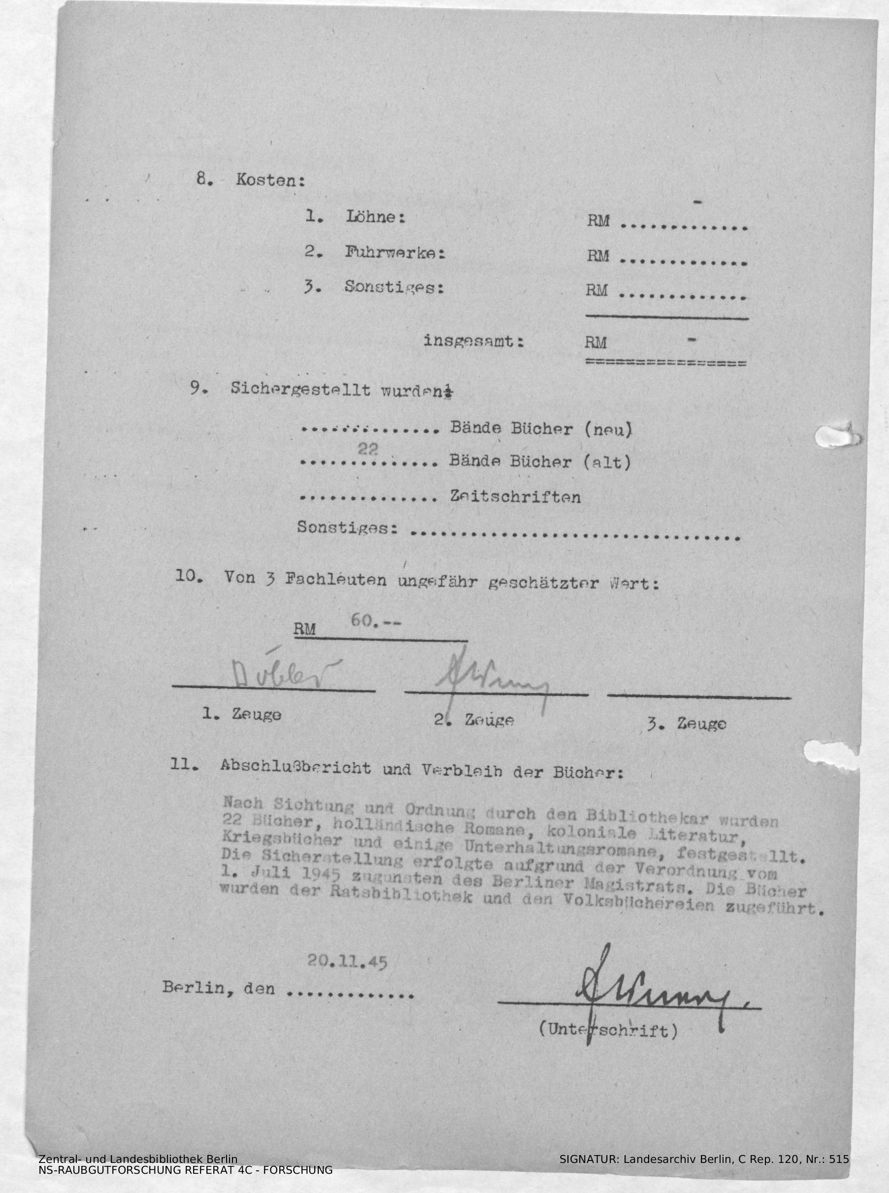 Verbleib der Bücher