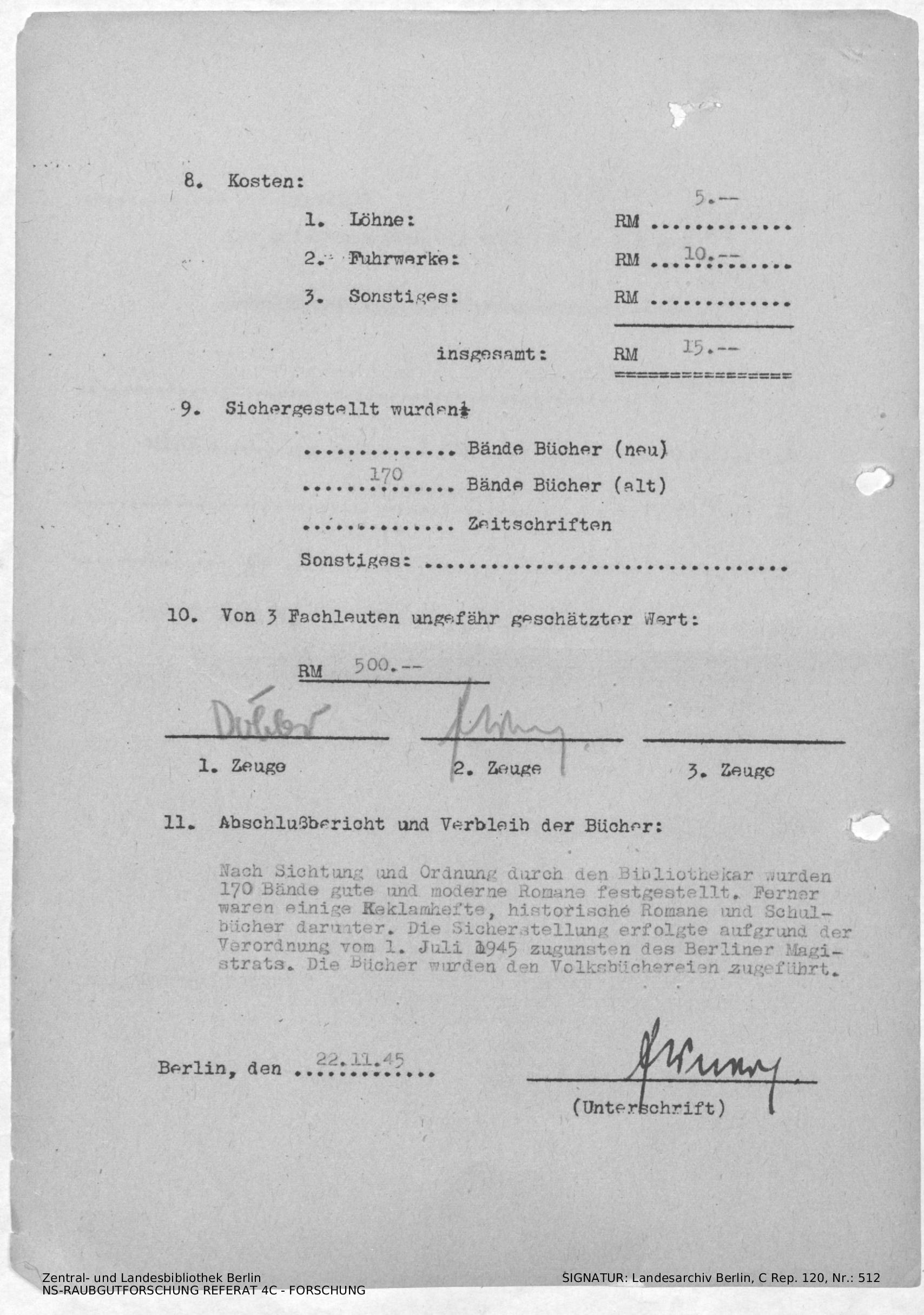 Verbleib der Bücher