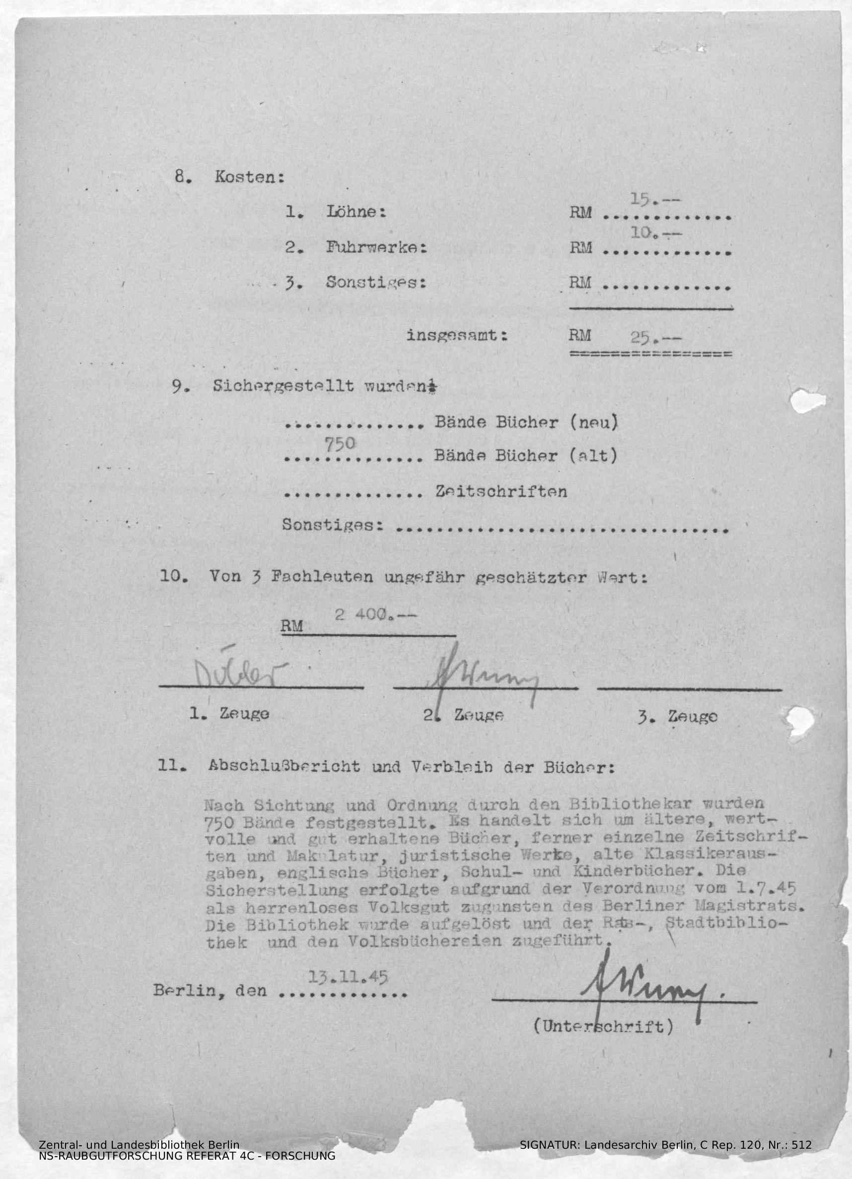 Verbleib der Bücher