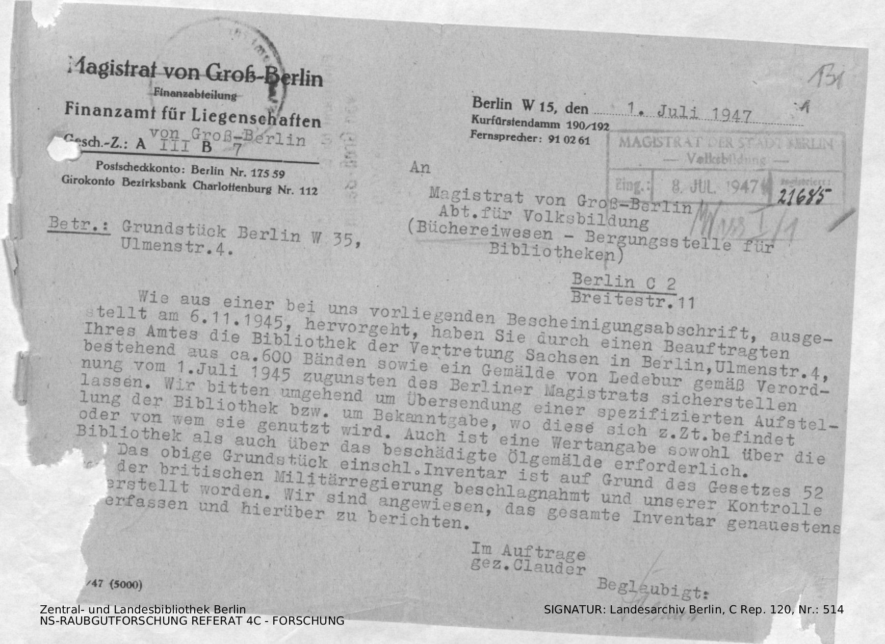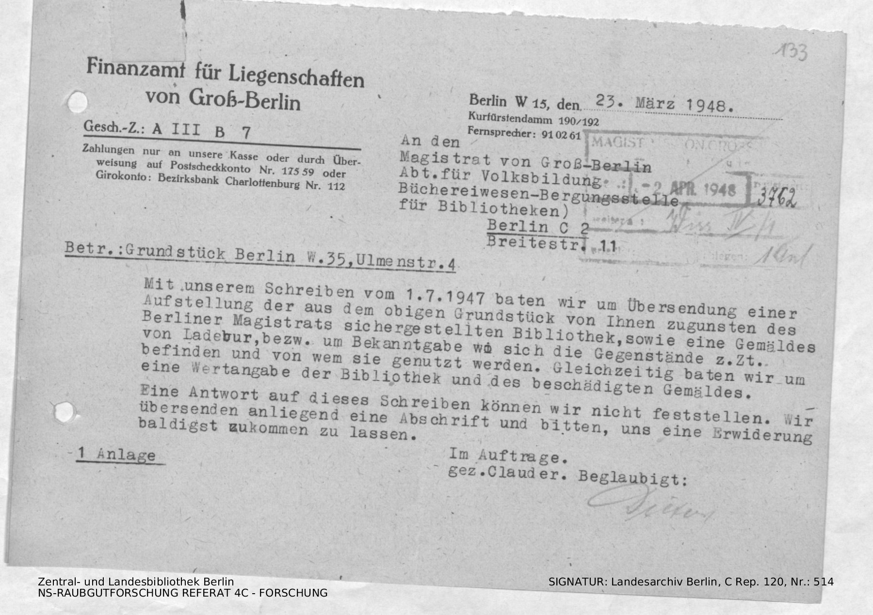 Hälfte der Bände Personalakten aus Behörden / schriftwechsel zw. Finanzamt und Magistrat bzgl. einem Ölgemälde