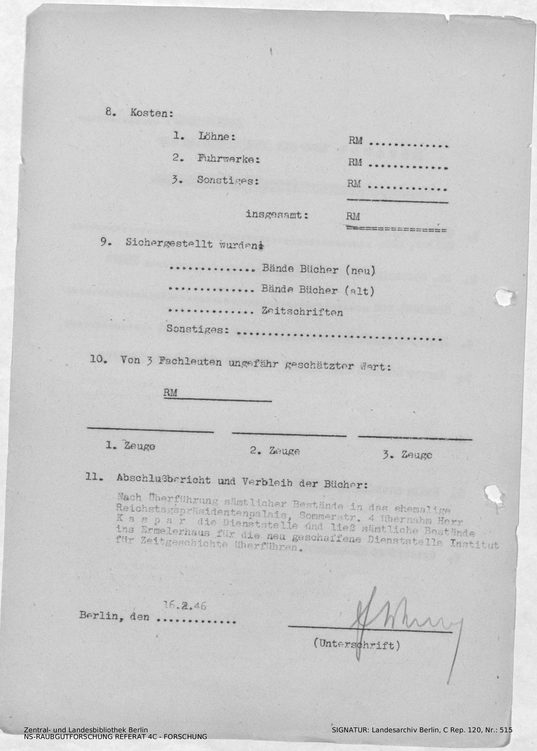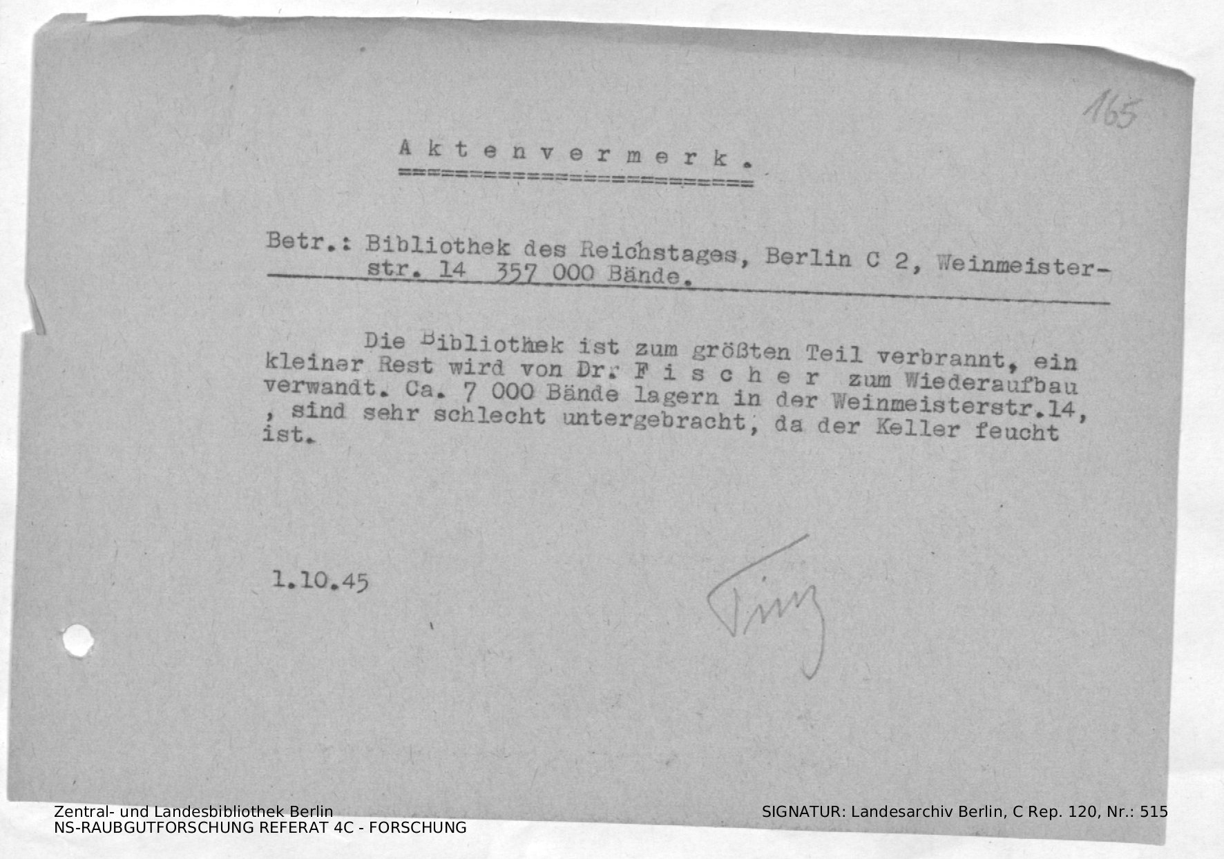 Zunächst von einem Herrn Kaspar betreut, dass ins Ermelerhaus überführt fürs IfZ/Fischer.