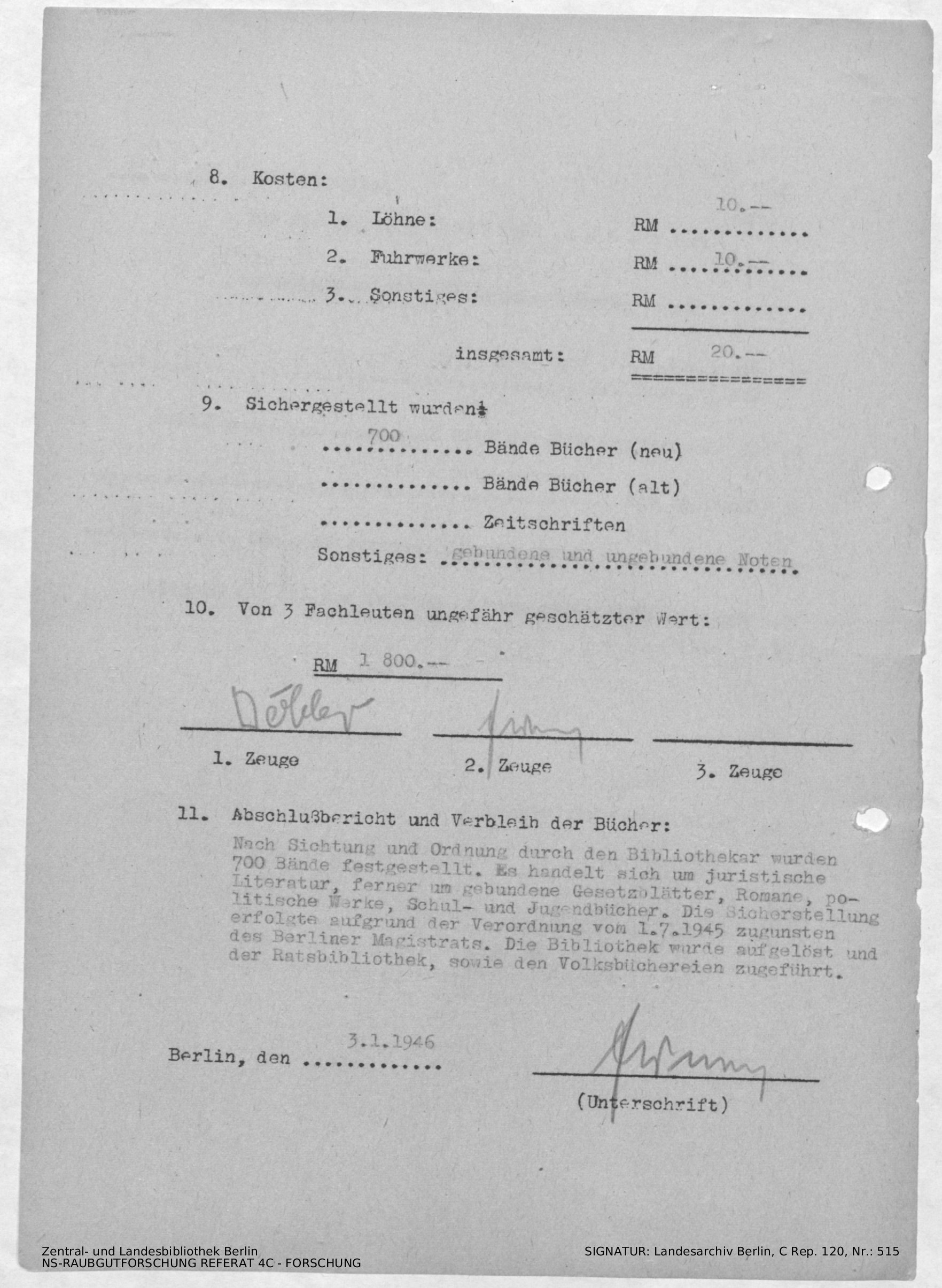 Verbleib der Bücher