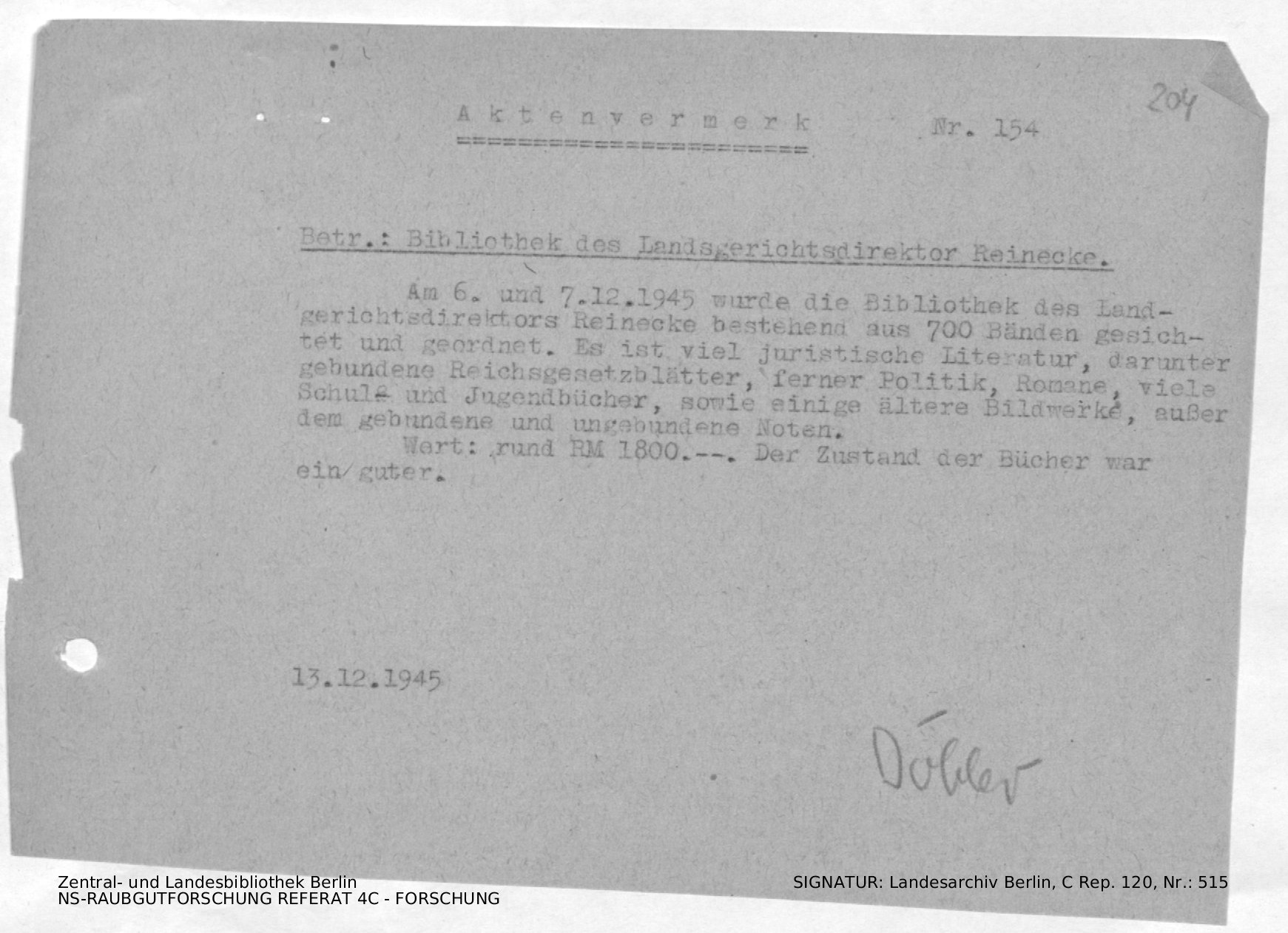 Bergungsnummer in ZLB gefunden