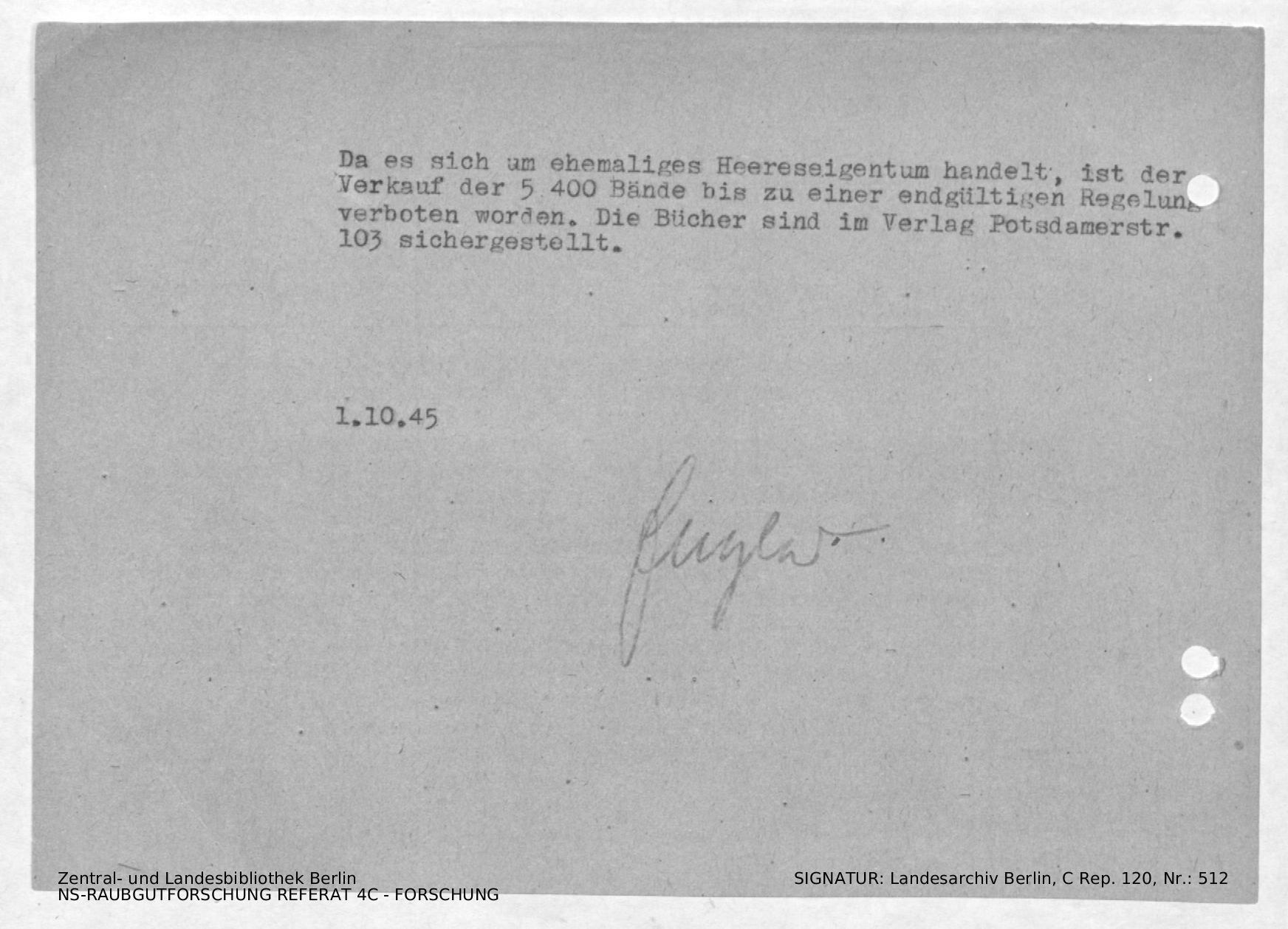 Verbleib der Bücher