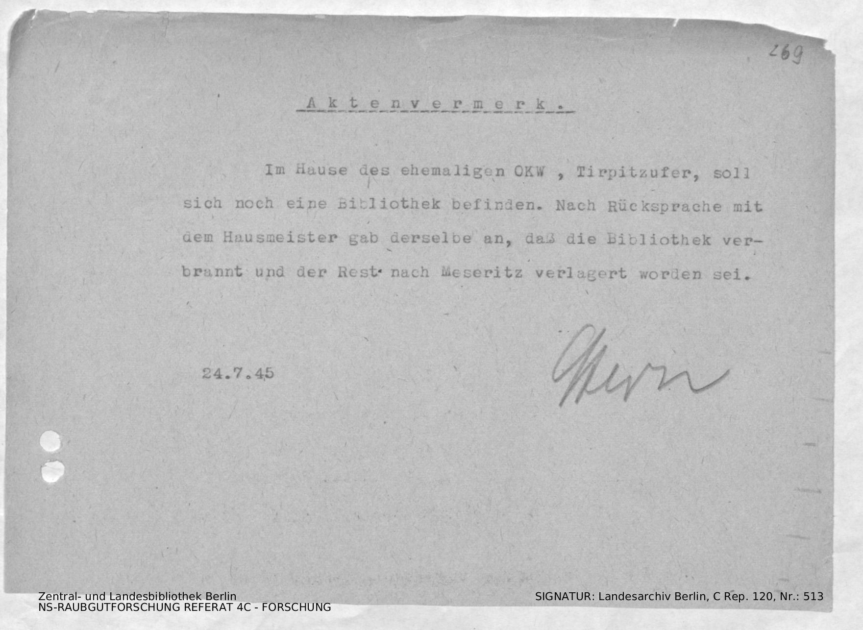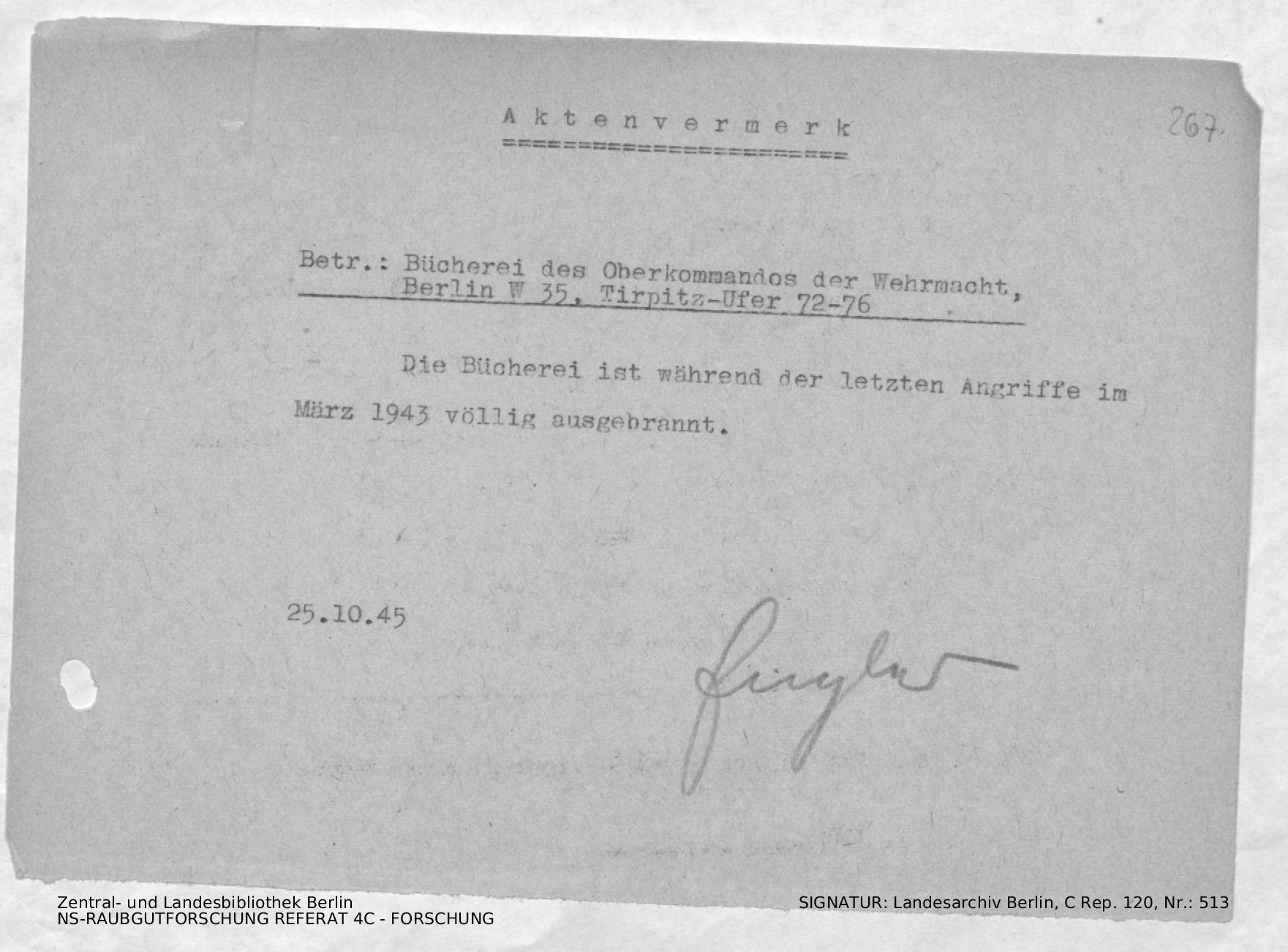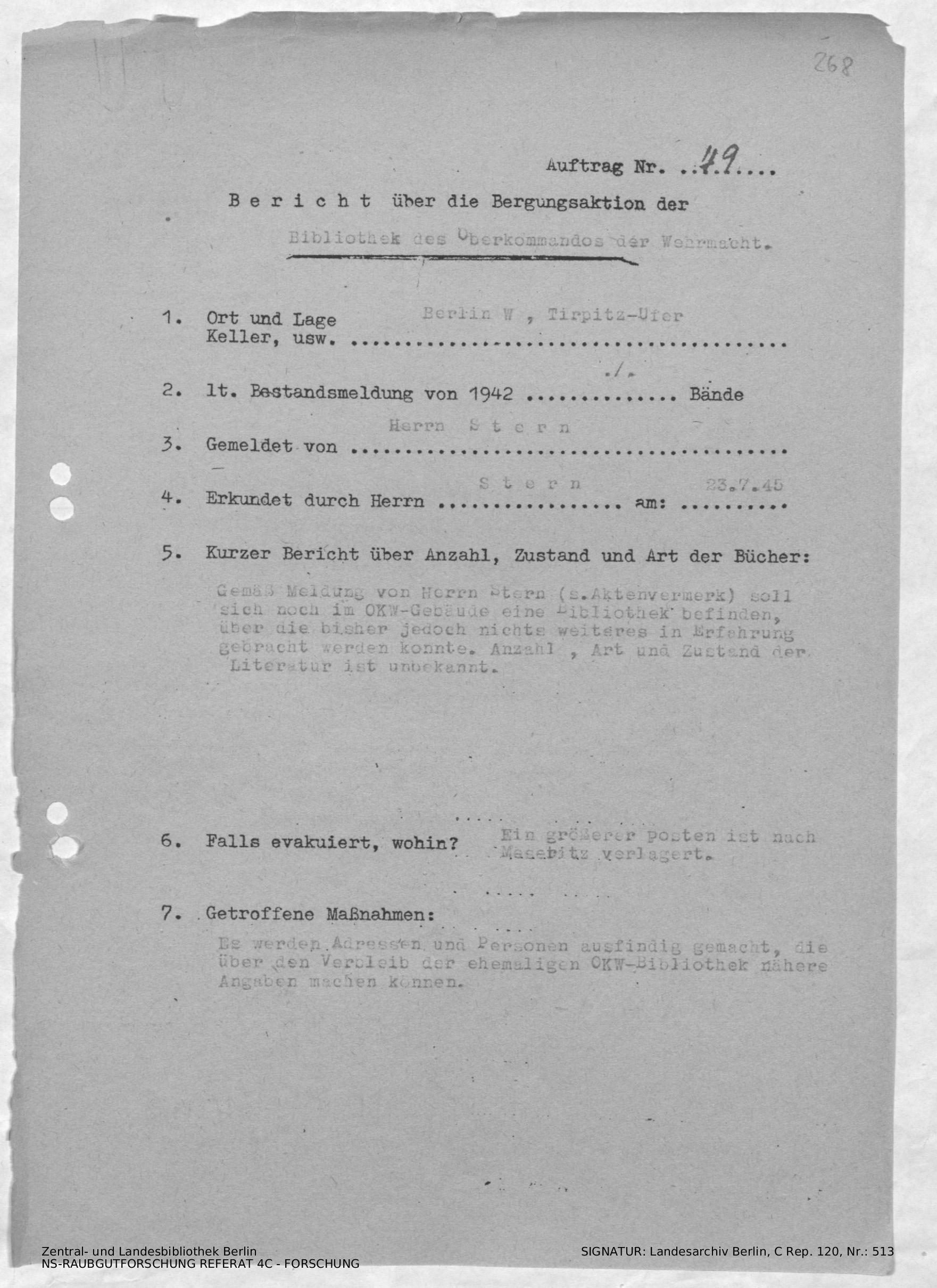 Bergungsnummer in ZLB gefunden