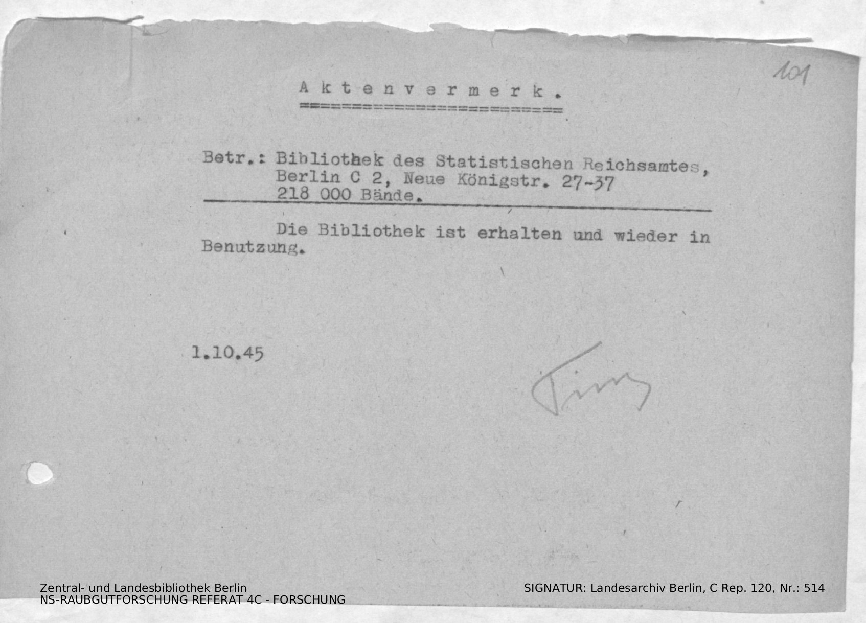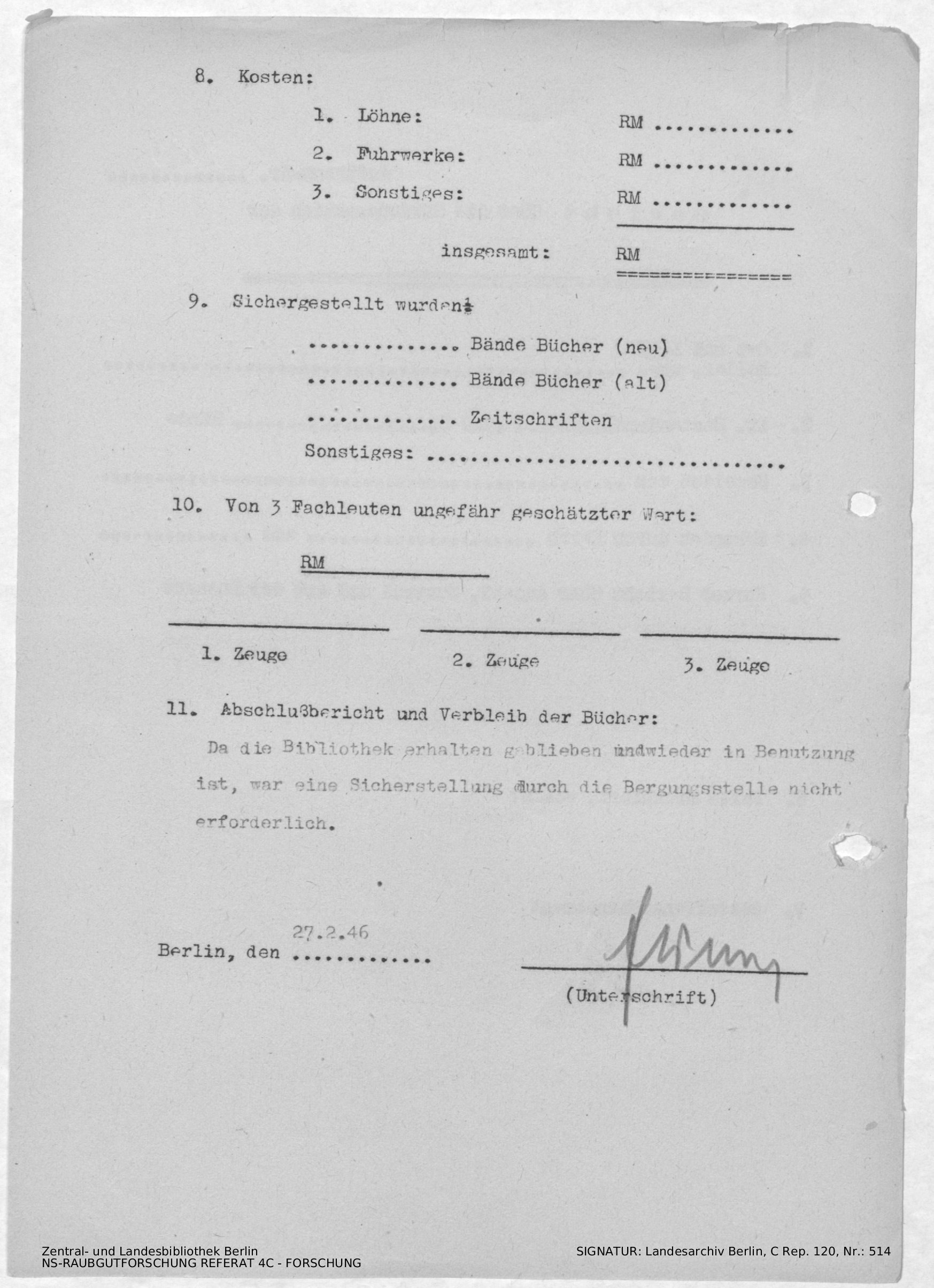 Bergungsnummer in ZLB gefunden