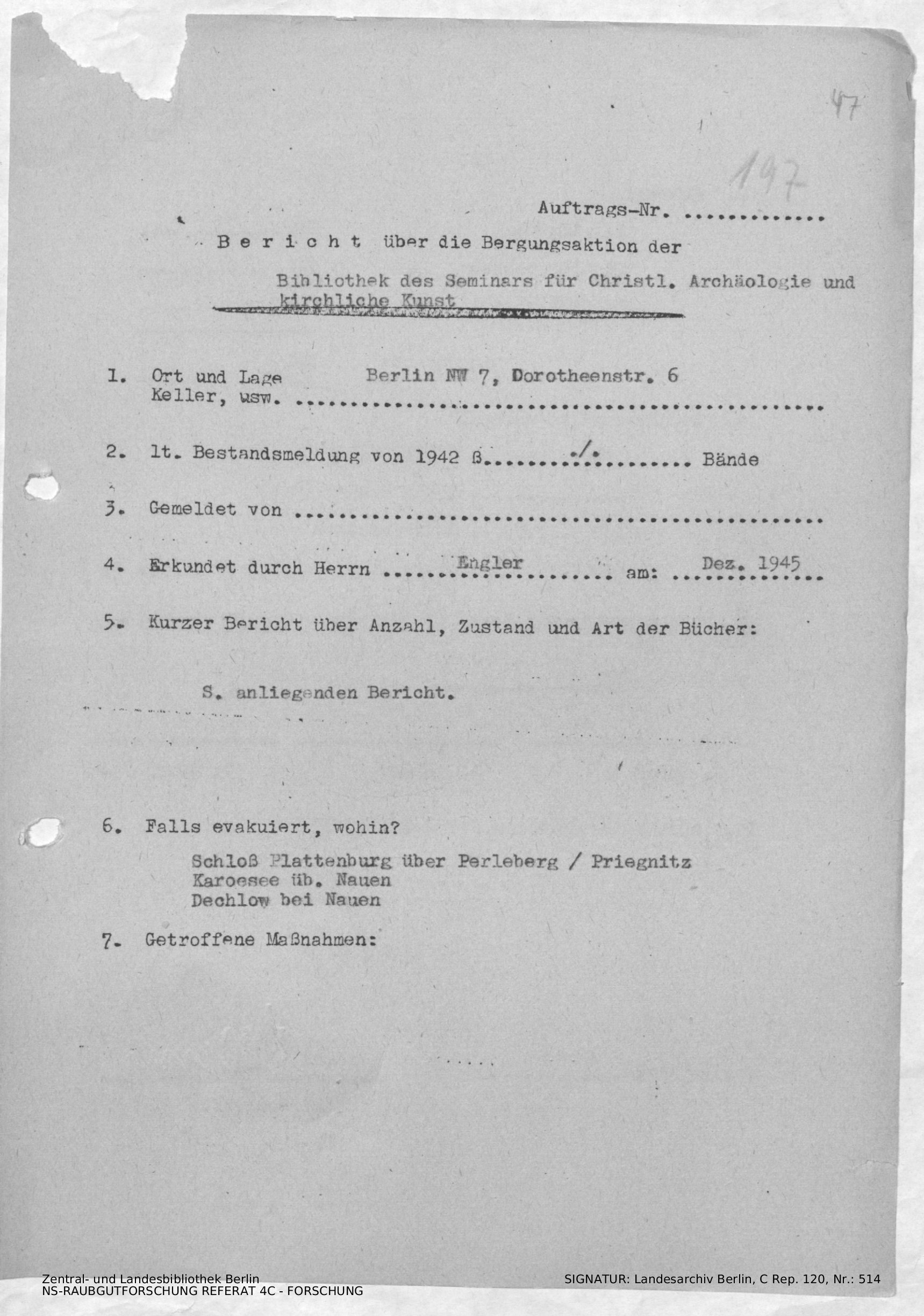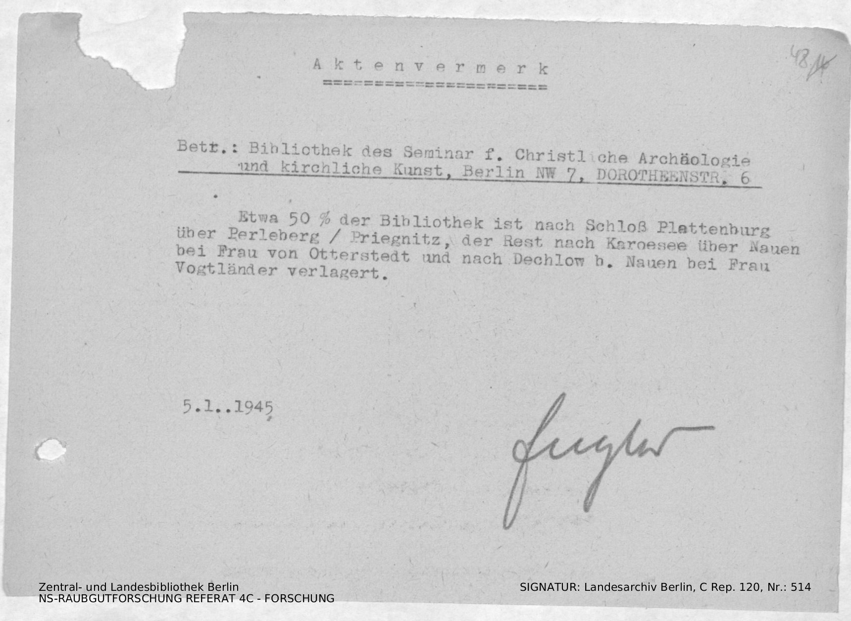 Berlin NW 7, Dorotheenstr. 6 / evakuiert nach Schloß Plattenberg über Perleberg - Prignitz; Karoesee über Nauen; Dechlow bei Nauen