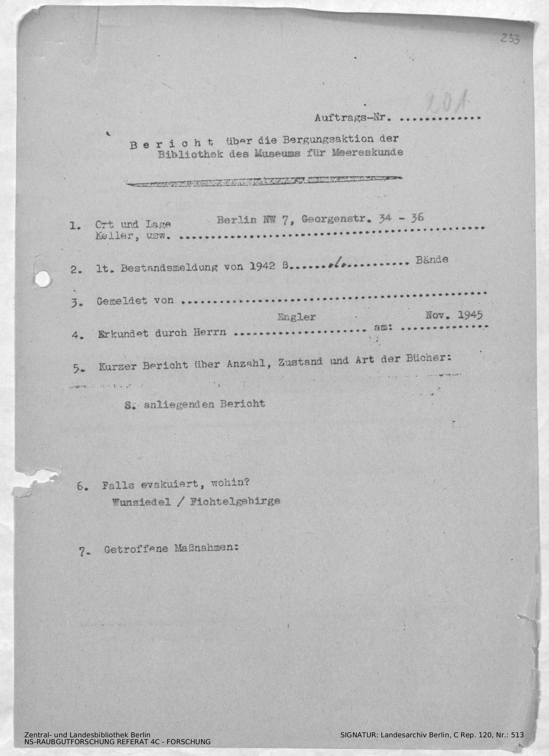 Berlin NW 7, Georgenstr. 34-36 / evakuiert nach Wunsiedel/Fichtelgebirge