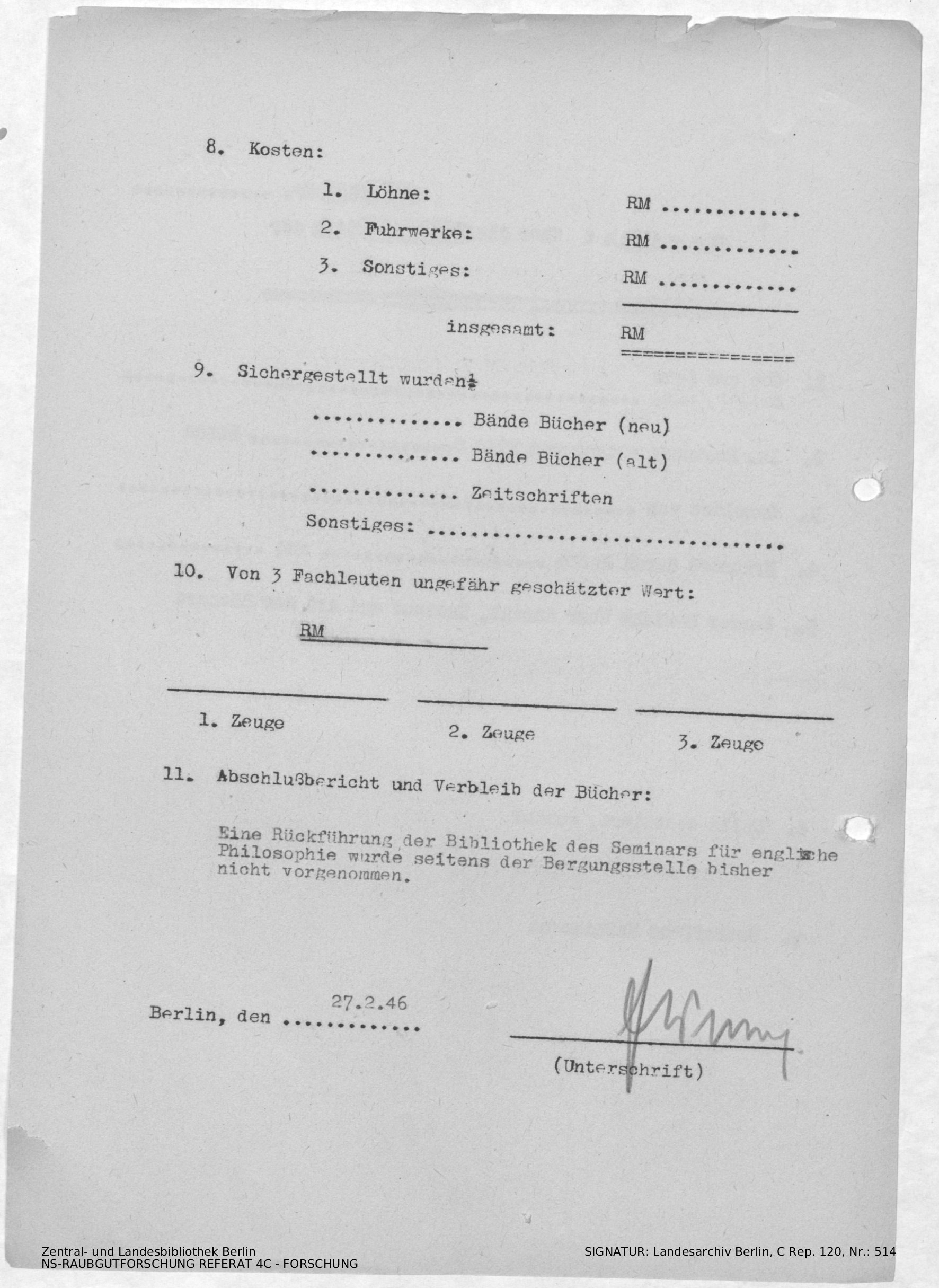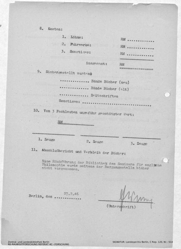 Verbleib der Bücher