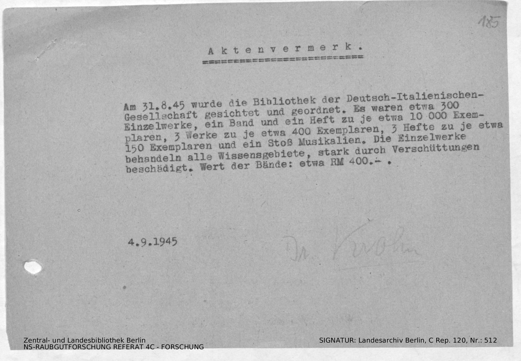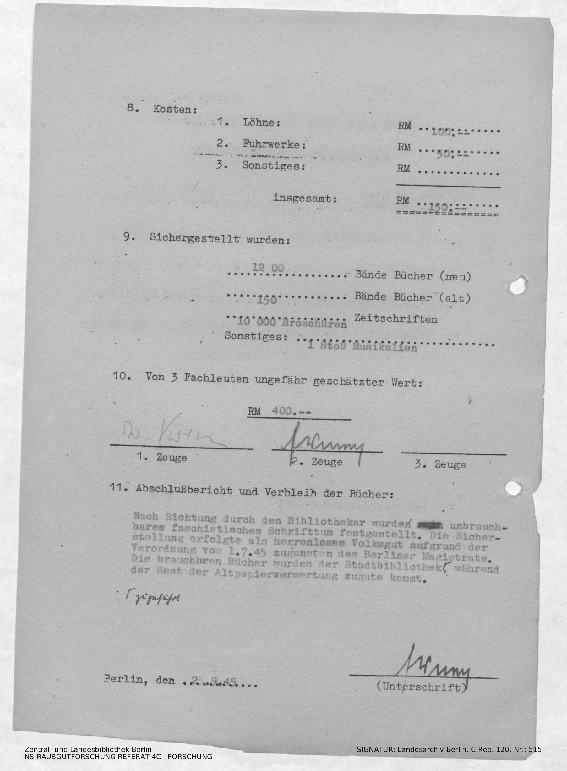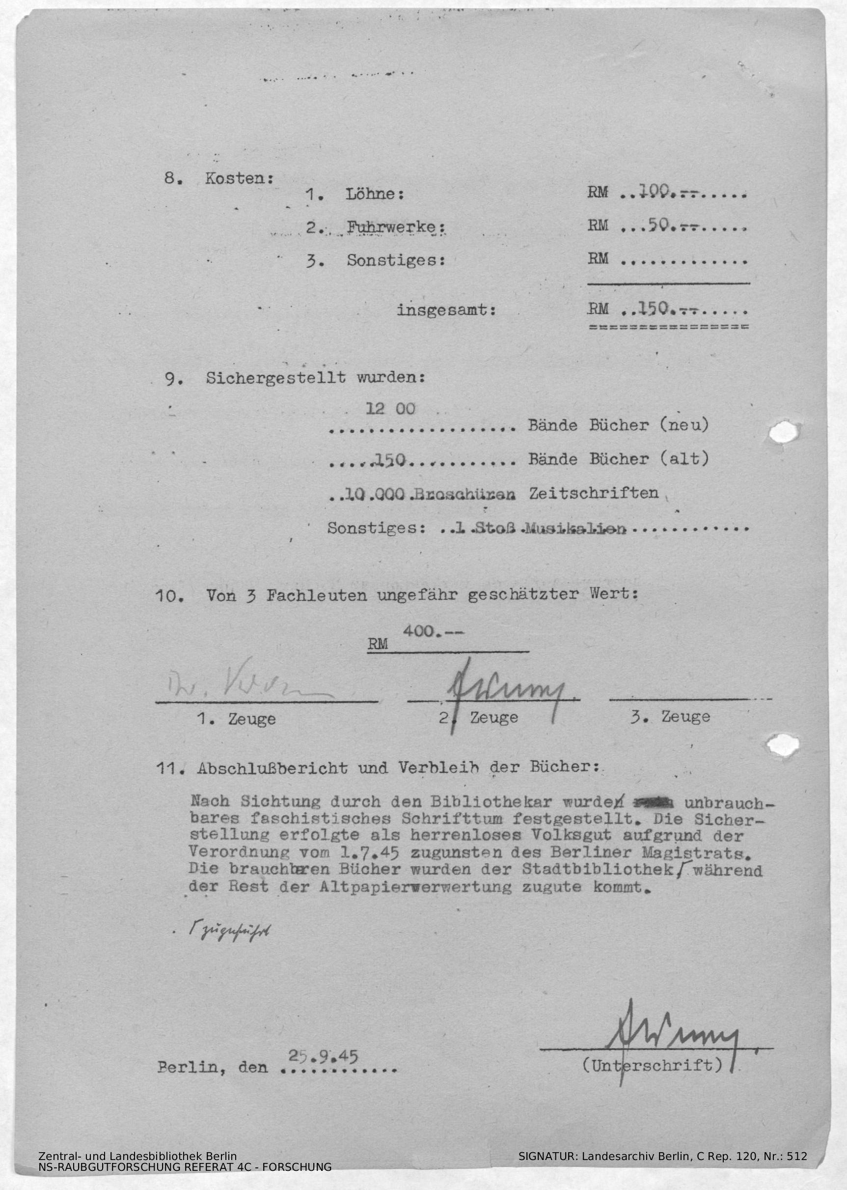 Verbleib der Bücher
