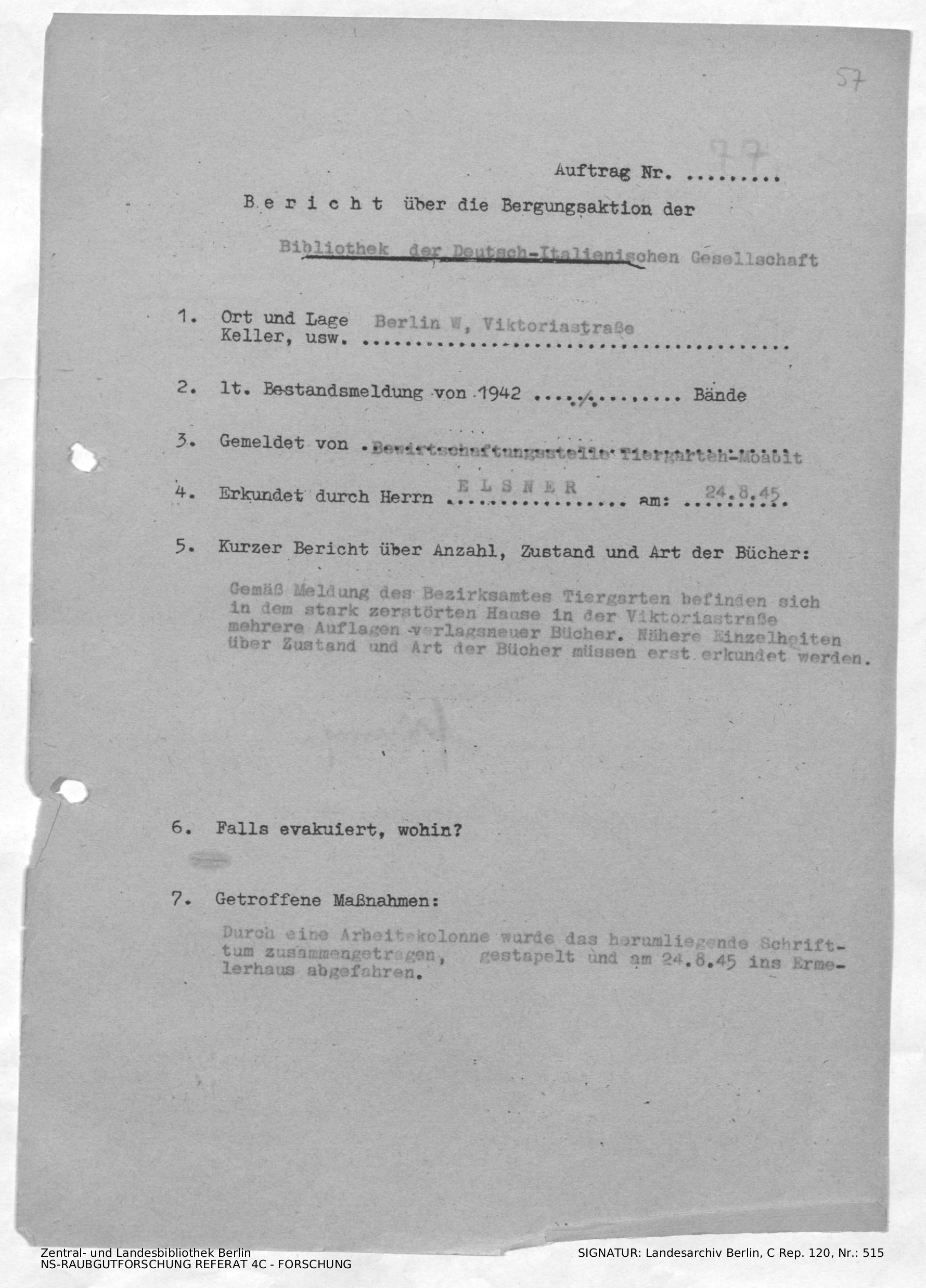 Bergungsnummer in ZLB gefunden