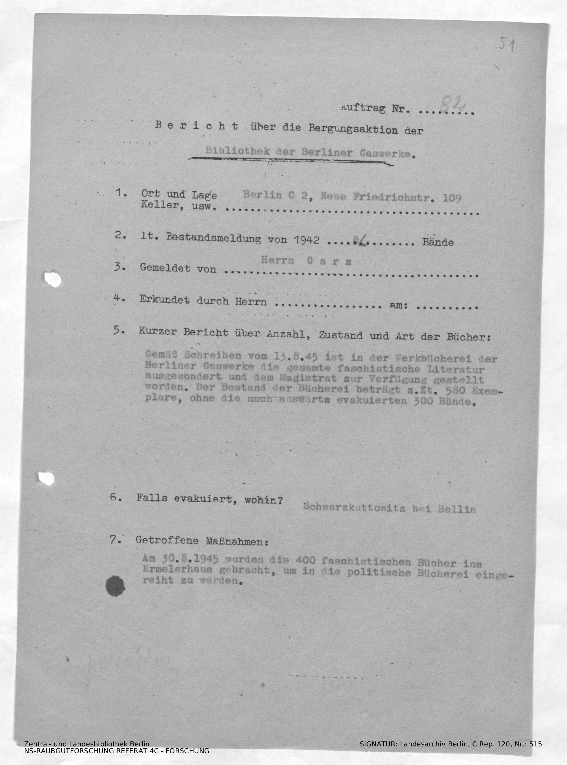Bergungsnummer in ZLB gefunden