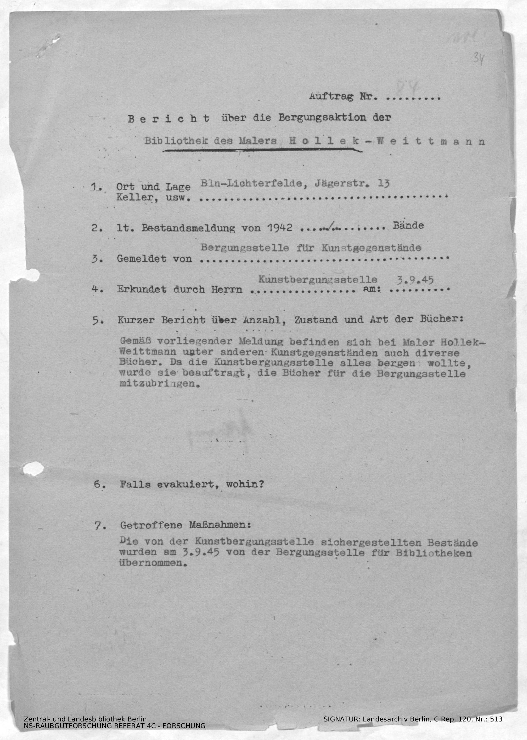 Bergungsnummer in ZLB gefunden