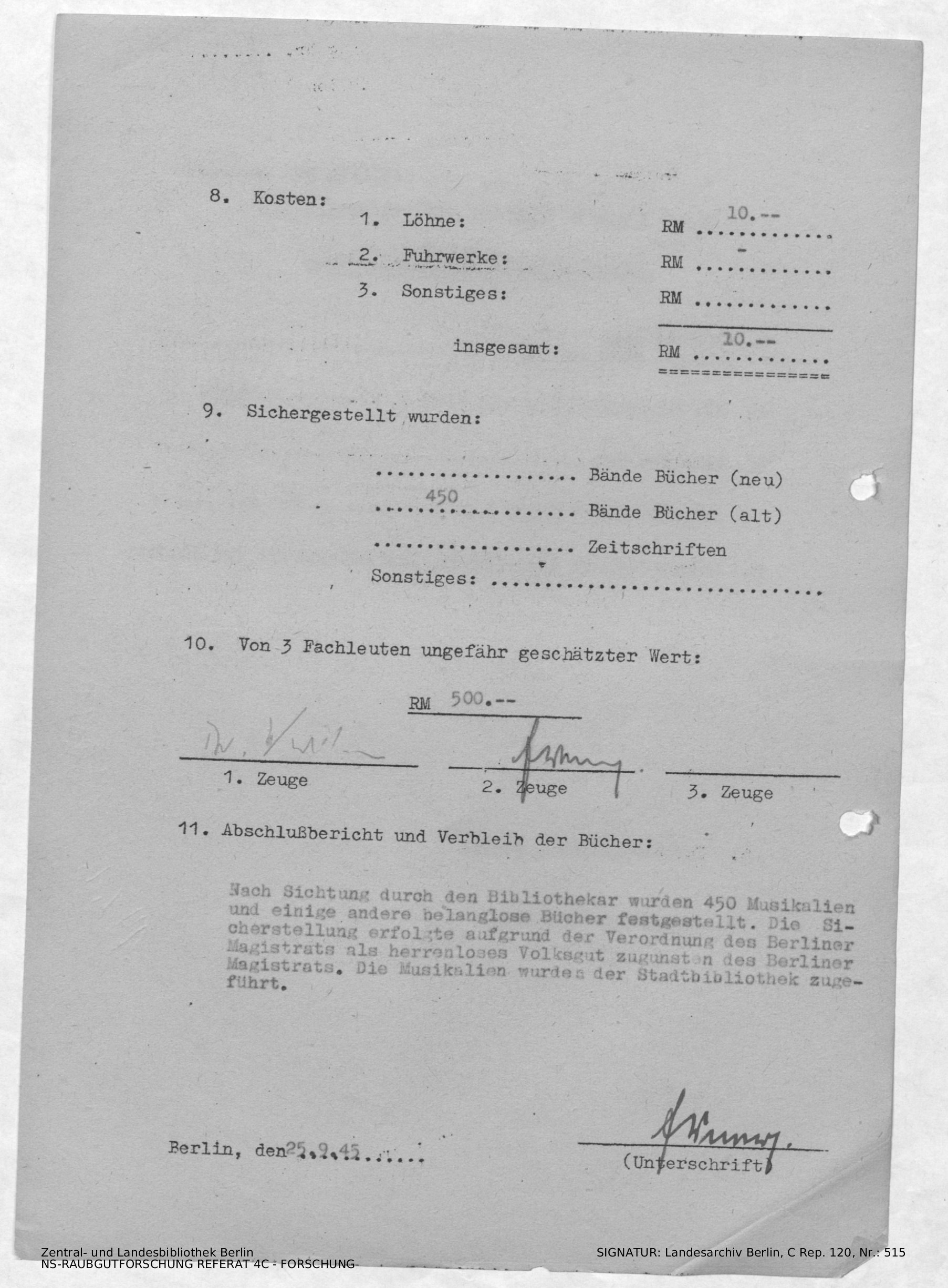 Verbleib der Bücher