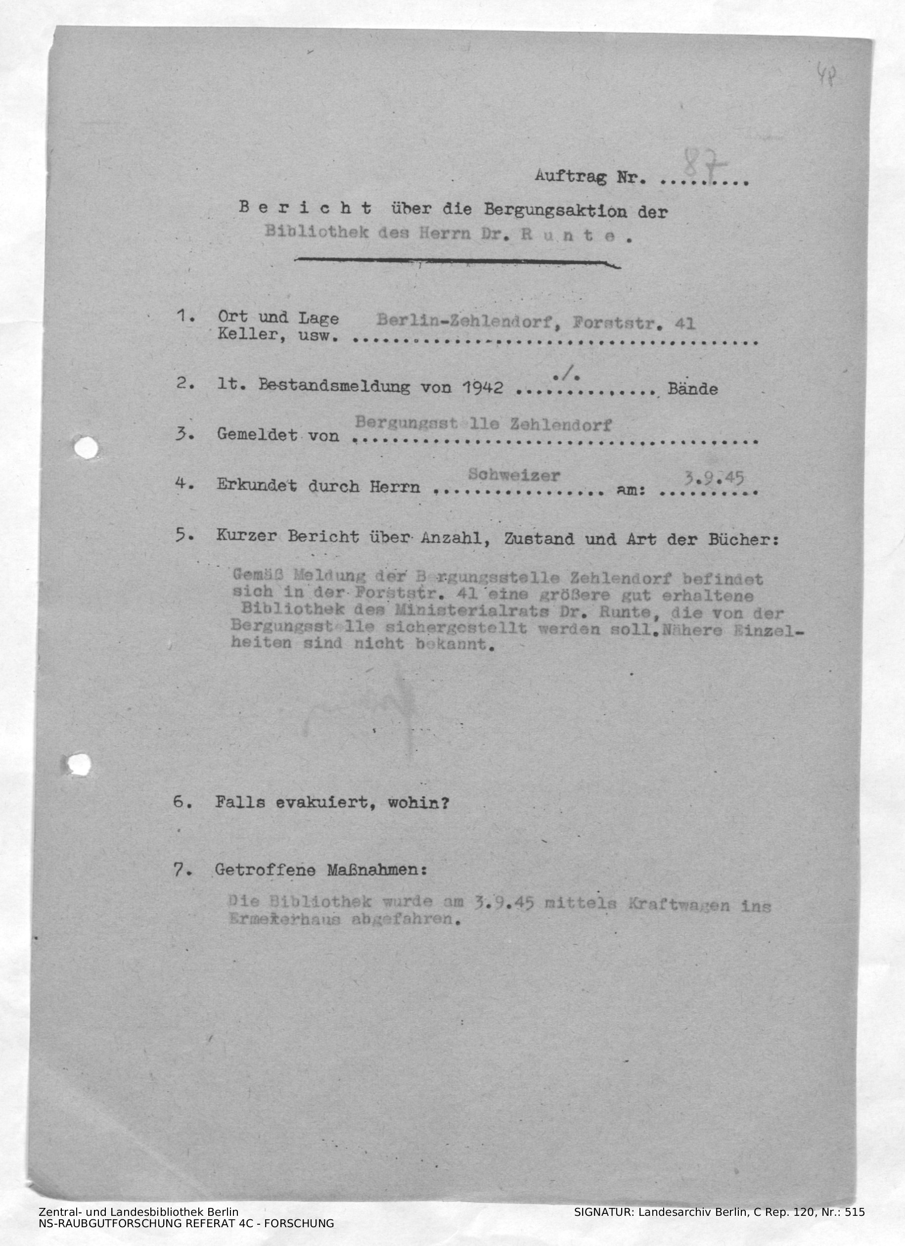 Bergungsnummer in ZLB gefunden