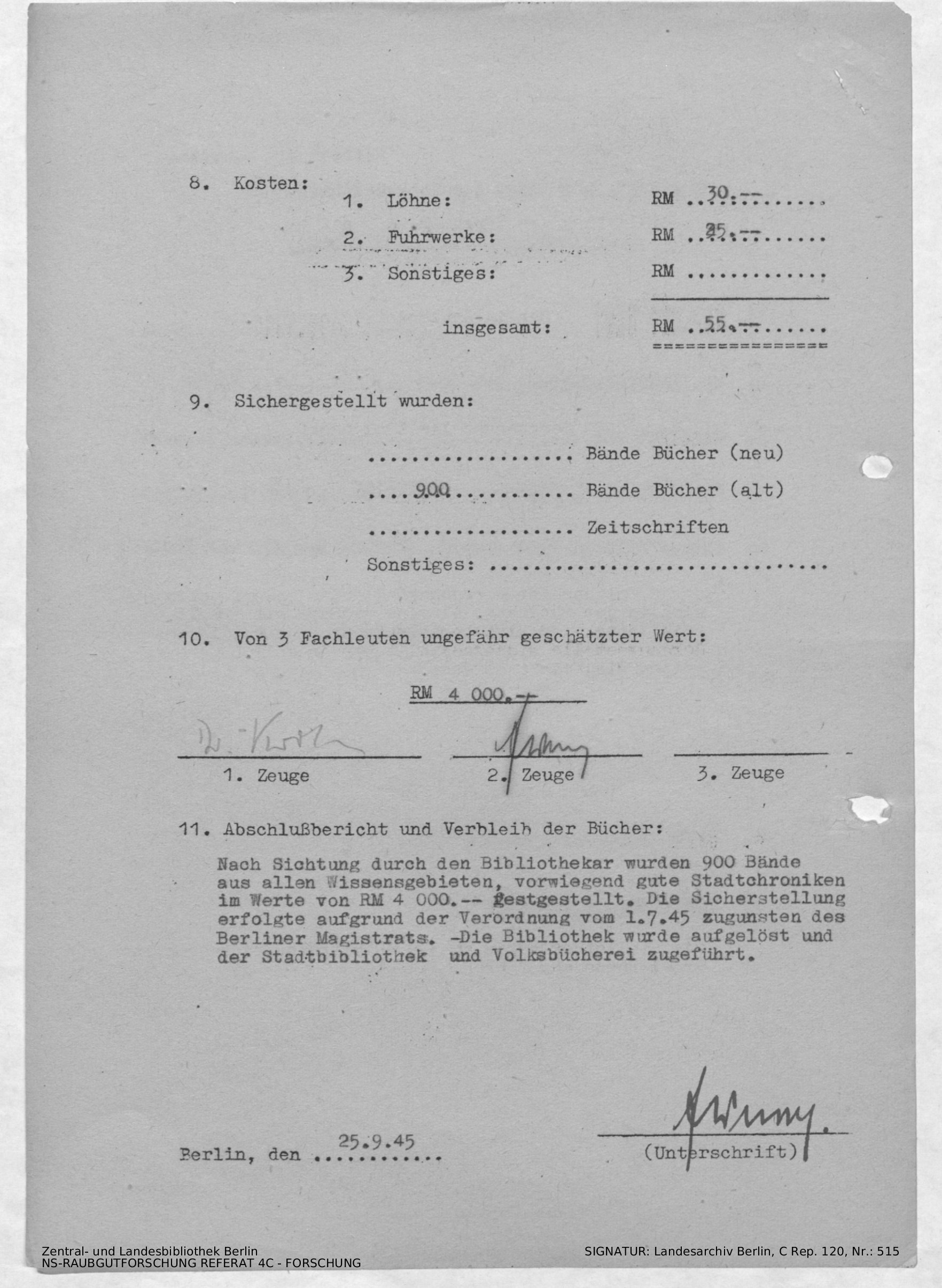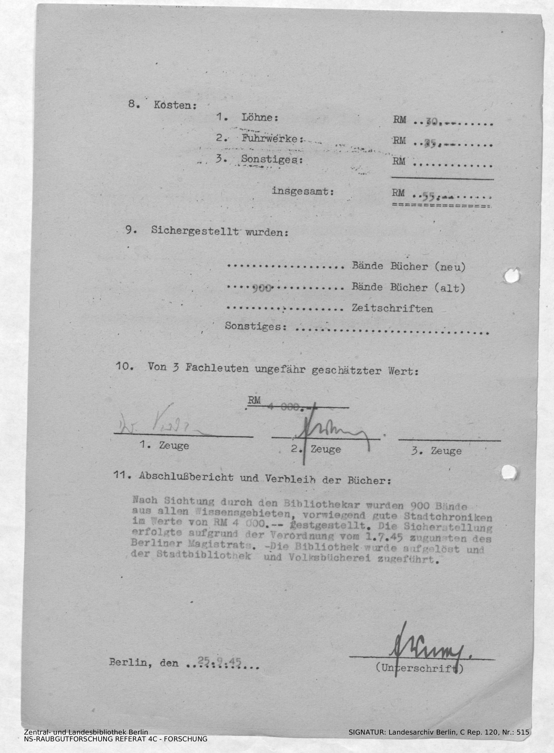 Verbleib der Bücher