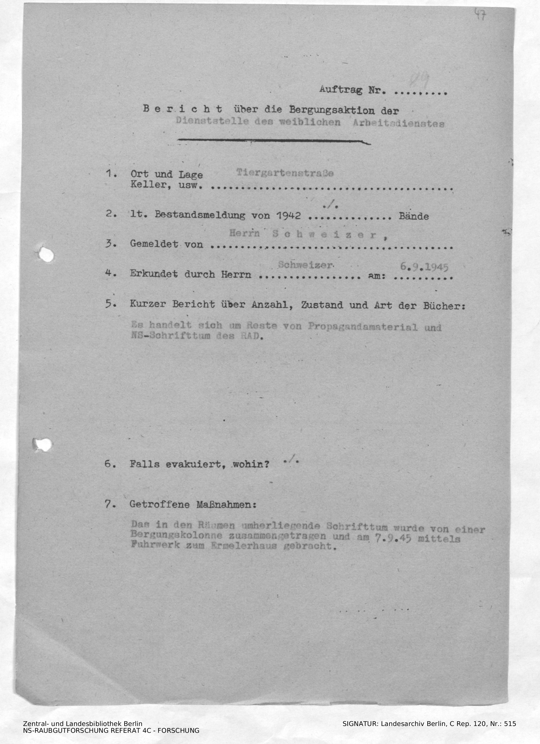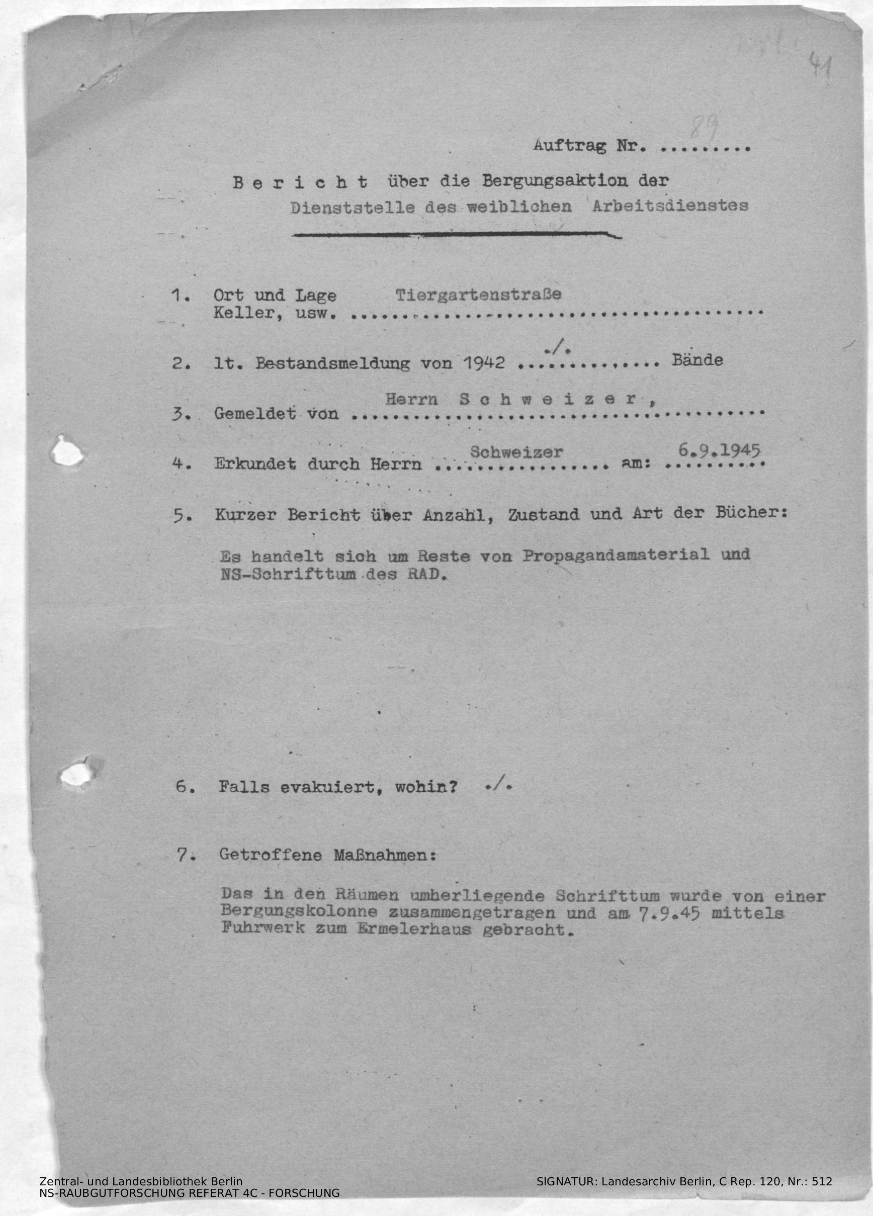 Bergungsnummer in ZLB gefunden