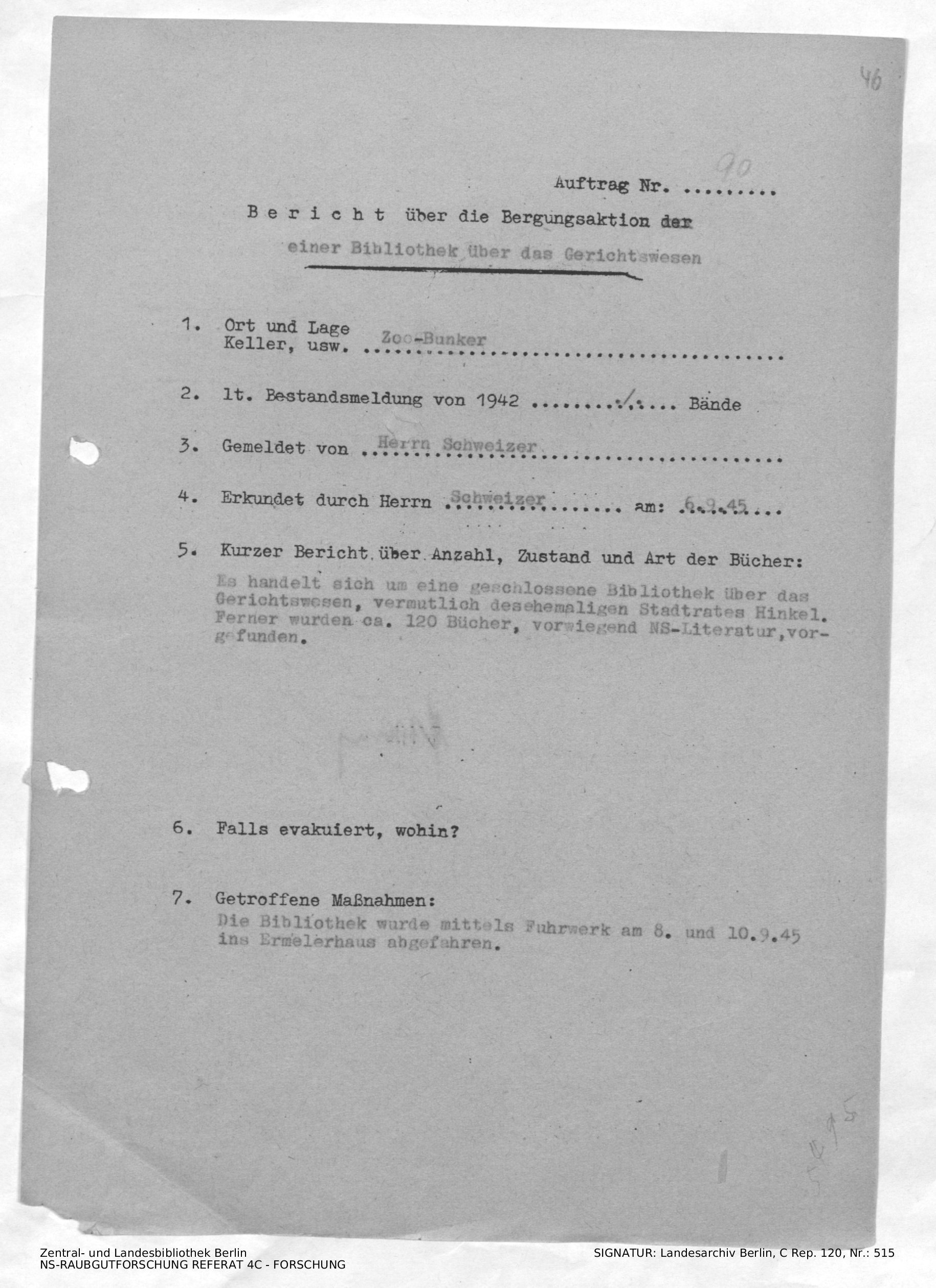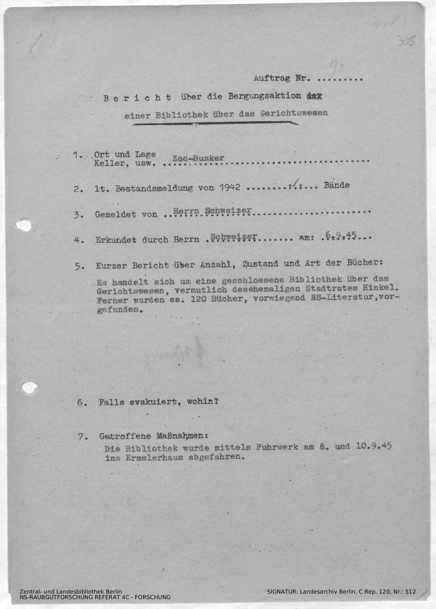 Bergungsnummer in ZLB gefunden