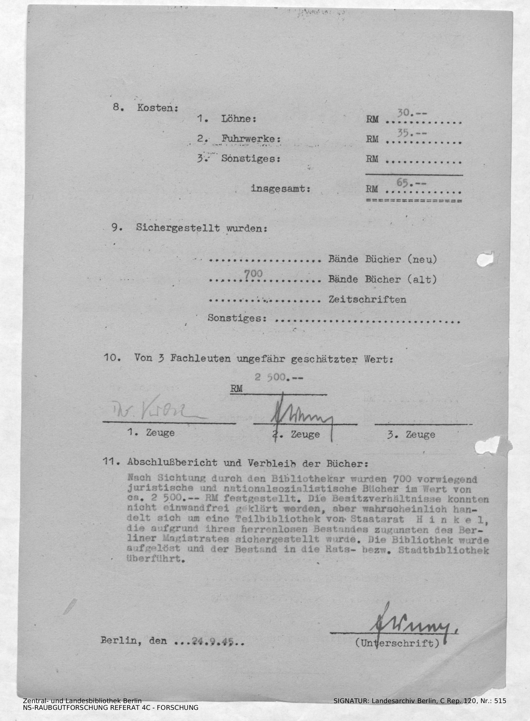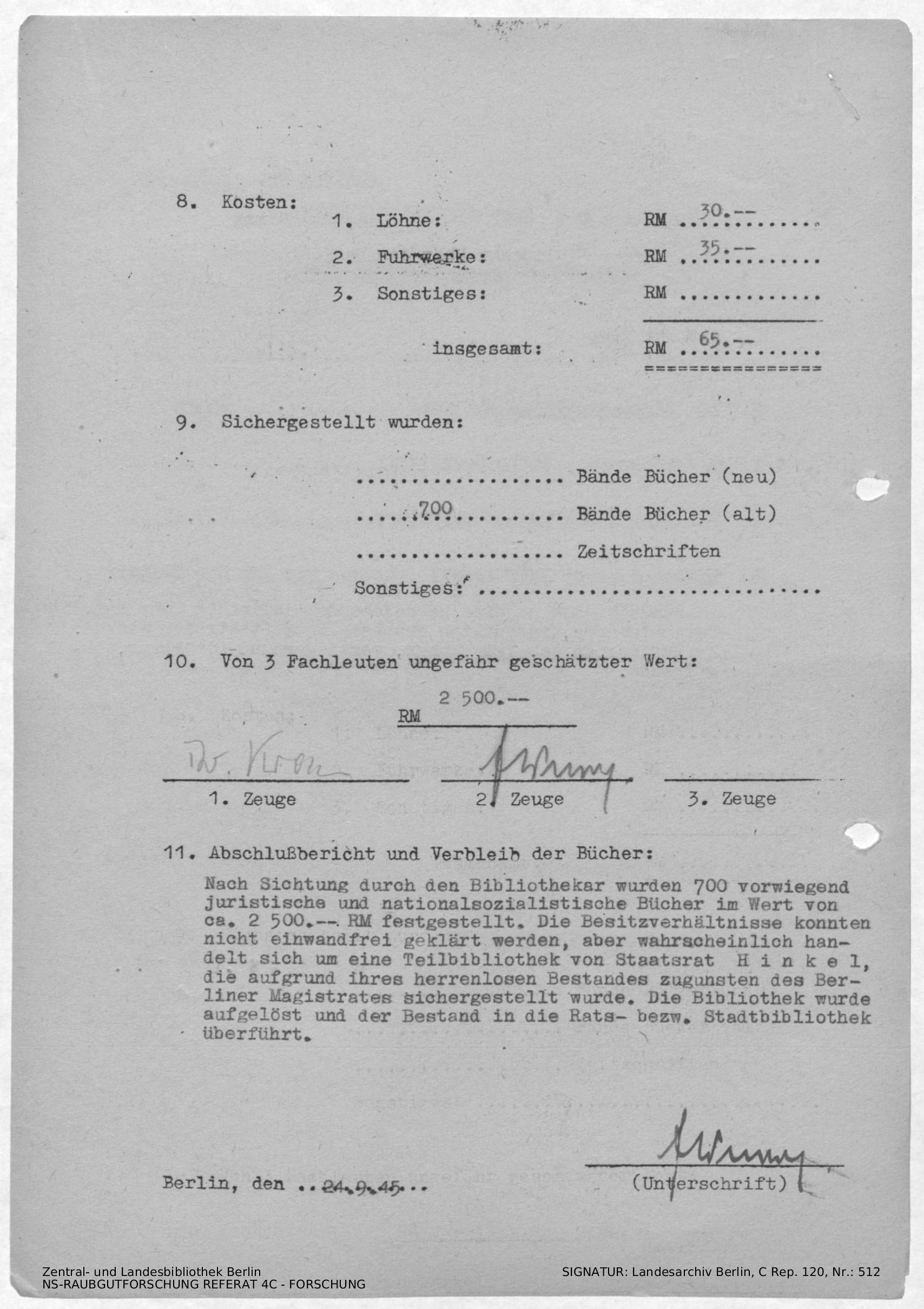 Verbleib der Bücher