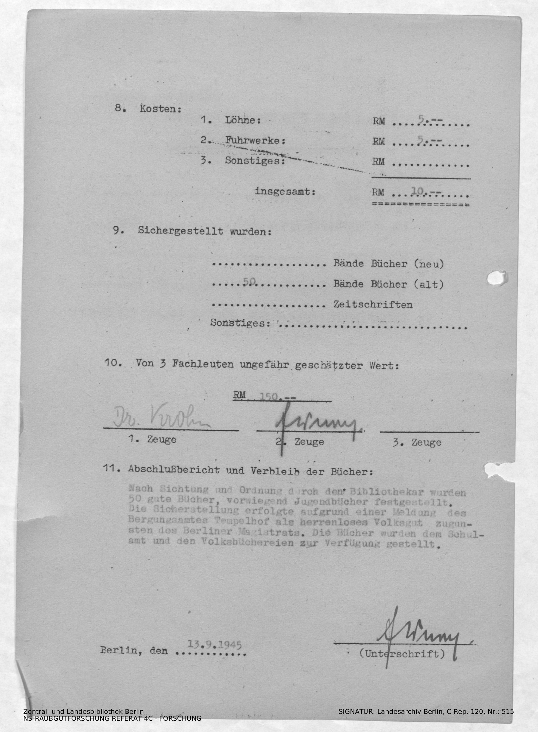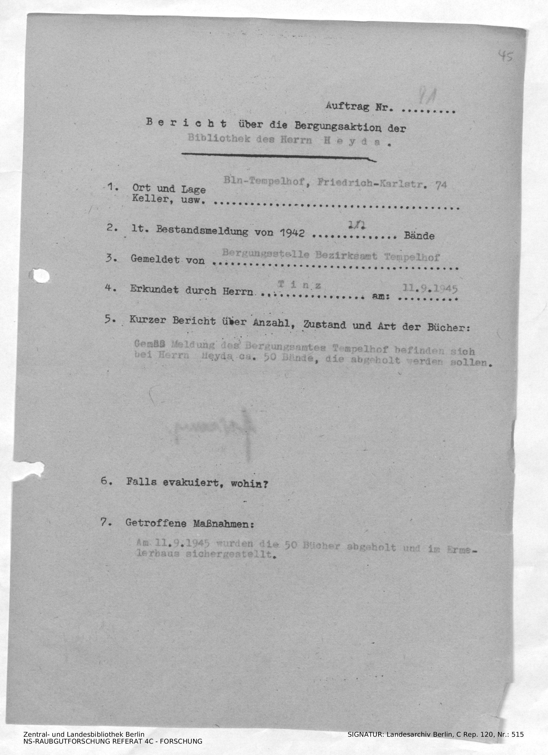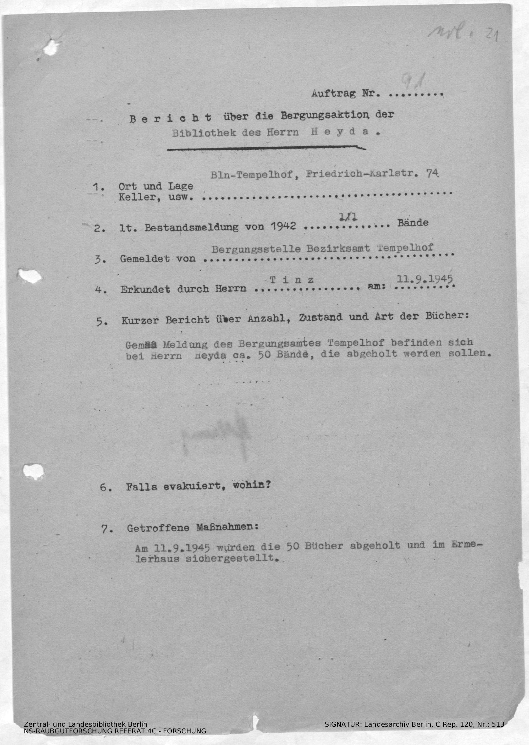 Bergungsnummer in ZLB gefunden