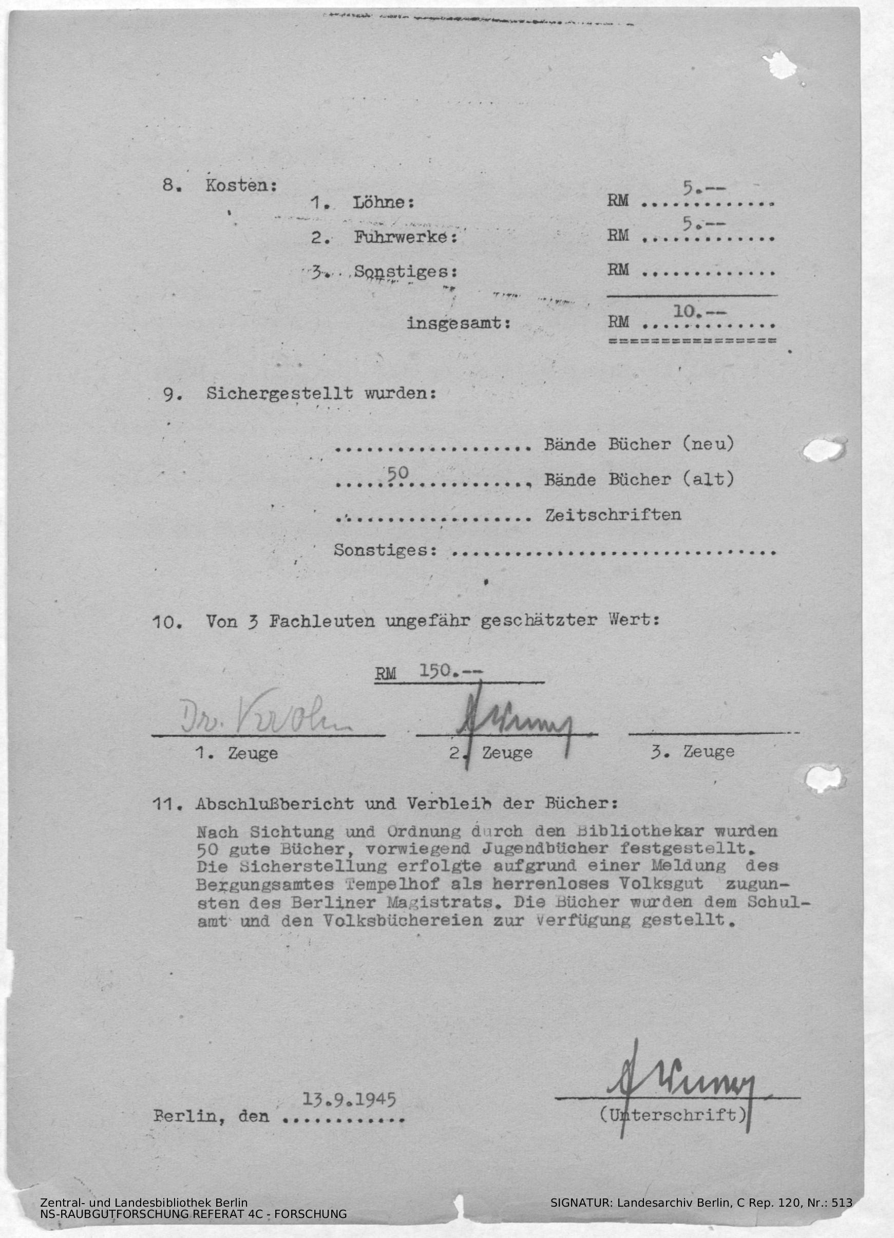 Verbleib der Bücher