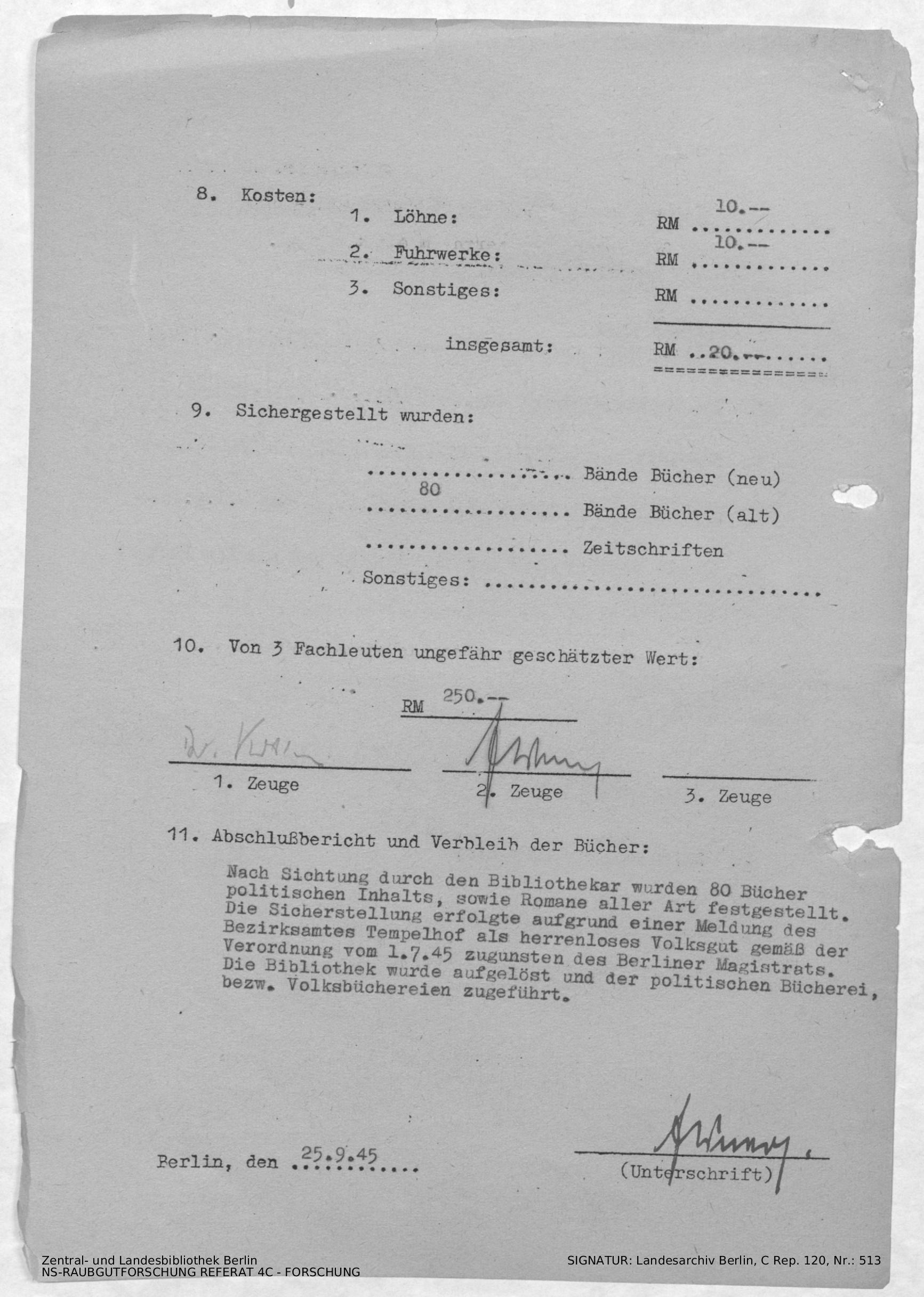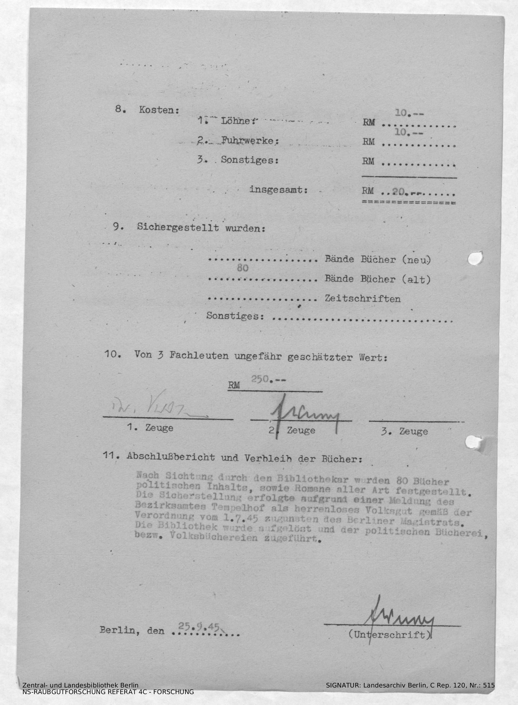 Verbleib der Bücher